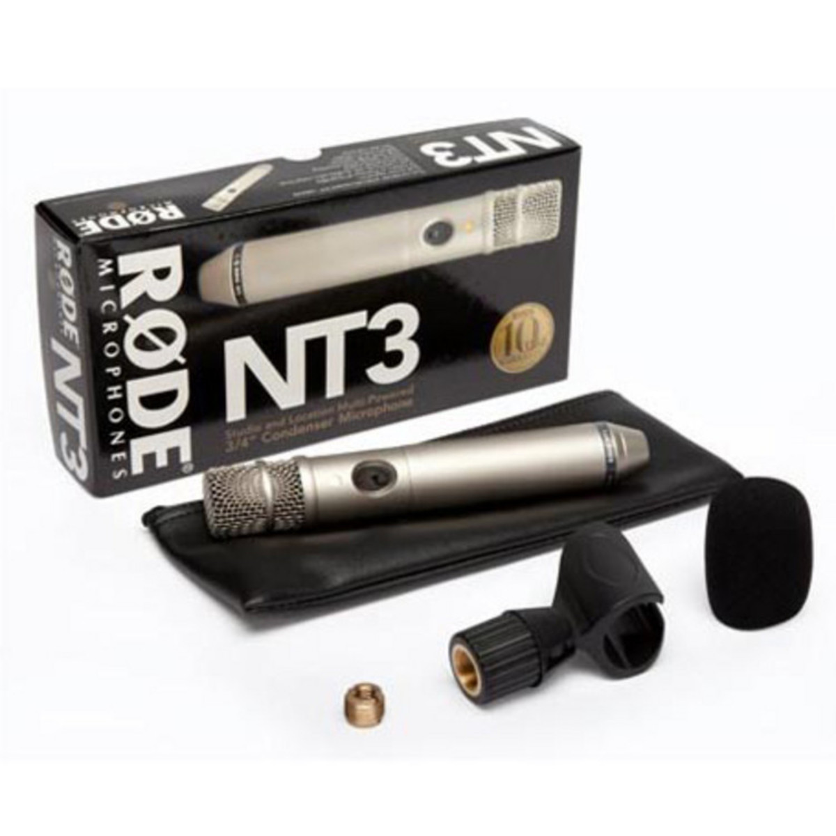 RODE NT3 - Студийный и полевой конденсаторный микрофон с диафрагмой 3/4", это настоящая рабочая лошадка для студий и записи на натуре в стильном и современном корпусе. Благодаря возможности не только фантомного 48 В питания, но и от 9 В батареи, эта модель не заменима как на студии, так и в полевых условиях.