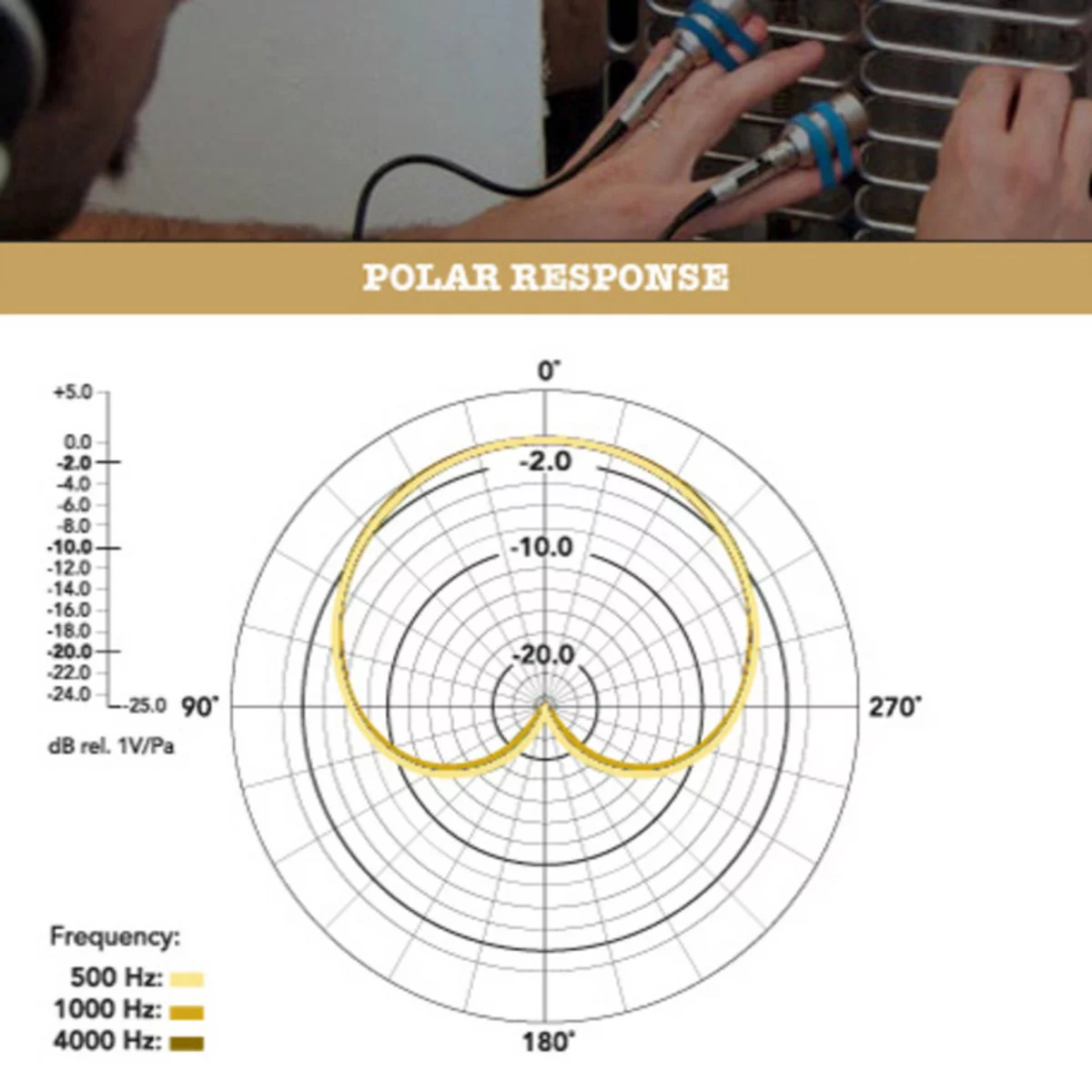 1/2” капсуль с позолоченной мембраной крепится на специально разработанном креплении полного вращения и присоединяется к предусилителю (телу) с помощью усиленного кабеля 3м с применением технологии Kevlar®.