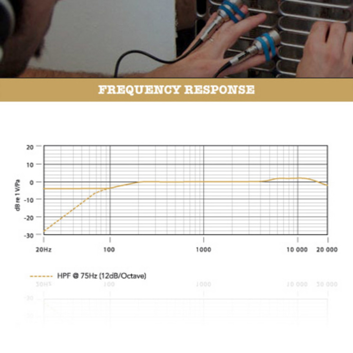 Предусилитель микрофона также несет на борту двухпозиционный аттенюатор 0дБ и -10дБ, и фильтр обреза НЧ с двумя позициями: линейная и 80Гц. Благодаря размещению этих опций на теле предусилителя, для изменения настроек нет необходимости передвигать сам капсюль.