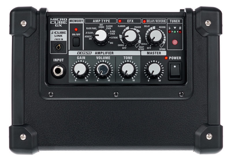 Новый MICRO CUBE GX представляет мощные тона для любого жанра музыки, от чистого джазового звука, до тяжелого хайгейна и всего, что между. Новый добавленный EXTREME тон дает мощный массивный драйв для настойщих металических рифов. Пять разных типов эффектов доступны, чтобы "подсластить" ваш звук, с новым эффектом HEAVY OCTAVE, который добавляет супер низкие частоты для "подогрева" вашего драйва. Независимые дилей и ревер с добавленным пружинным ревером дает аутентичное звучание таких стилей, как surf.