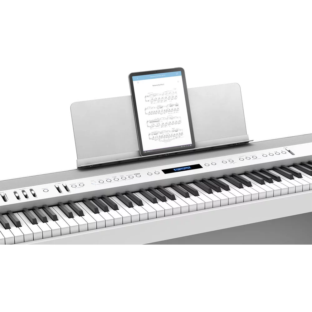 FP-60X благодаря наличию усовершенствованных современных функций открывает мир новых возможностей. Можно играть на фортепиано под аккомпанемент передаваемой со смартфона по Bluetooth музыки, воспроизводя ее через встроенную аудиосистему, или работать над техникой игры с помощью онлайн-уроков. А функция Bluetooth MIDI обеспечит подключение к любимым музыкальным приложениям по созданию музыки, таким как Zenbeats компании Roland или GarageBand компании Apple. Хотите попеть? Подключите микрофон, добавьте эффектов и усильте свой голос с помощью встроенной акустической системы, записывая его и игру на фортепиано в рекордер инструмента. Кроме того, FP-60X поддерживает работу с аудио по USB и обмен MIDI-данными, позволяя подключать фортепиано к компьютеру и записывать треки с использованием профессионального программного приложения по производству музыки.
