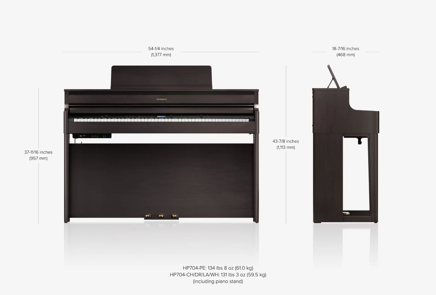 Фортепиано с превосходным звуком просто обязано и выглядеть подобающим образом. Концепция дизайна HP704, позаимствованная у фортепиано флагманской серии LX компании Roland, определила форму корпуса инструмента, устремленную вверх и создающую ощущение "легкости", элегантных передних ножек и утонченных обводов, которые выглядят настолько привлекательно, что рождают желание сесть за инструмент и начать играть. Отделки всех вариантов отличаются высоким качеством, так что проблем с выбором инструмента, который способен украсить интерьер вашей гостиной, возникнуть не должно. Кроме того, конструкция кабинета оптимизирована с точки зрения обеспечения высокого качества звука независимо от того, где устанавливается фортепиано. Доступны следующие виды покрытий: под полированное черное дерево, древесный уголь, темный палисандр, светлый дуб и белое.