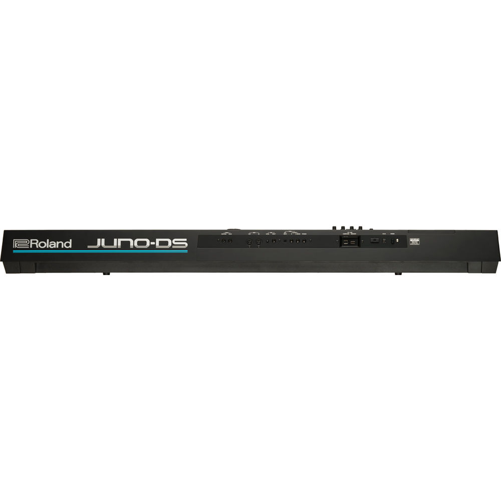Существует одна вещь, которая делает серию JUNO любимым у клавишников, это непременно оперативность доступа к функциям, легкость выбора инструментов. Но если вы хотите углубится и настроить звучание, JUNO-DS88 предоставит доступ к любому редактированию патчей. Передняя панель насыщена регуляторами, слайдерами и кнопками, а на задней панели размещены разъемы для джеков и педалей экспрессии и сустейна одновременно.