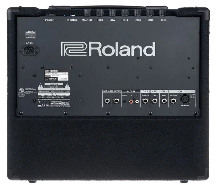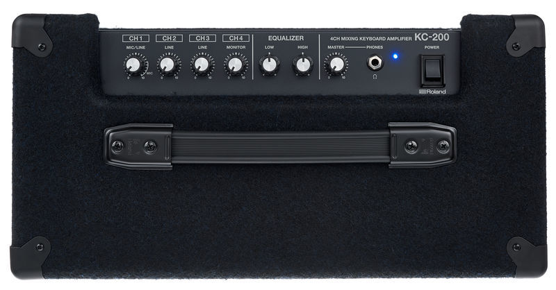 KC-200 — компактный комбо с полнодиапазонным звуком мощностью 100 ватт. Двойная фазоинвертерная конструкция кабинета, запатентованная компанией Roland, позволяет расширить диапазон воспроизводящихся без искажения низких частот. Модернизированная секция усиления КС-200 и усовершенствованный 12-дюймовый вуфер обеспечивают более качественное воспроизведение низов, что гарантирует превосходного звучания при усилении сигналов 88-клавишных сценических пианино, органов, синтезаторов, драм-машин и других электронных инструментов.