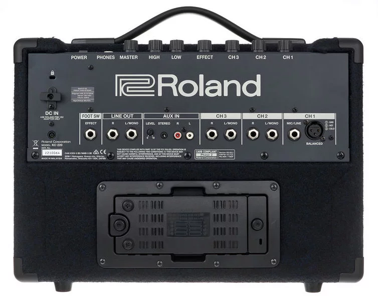 KC-220 воспроизводит полнодиапазонный стереофонический звук мощностью 30 ватт (15 ватт х 2) с помощью разработанных на заказ двух динамиков 6,5" и также разработанных на заказ двух твиттеров. Модернизированная секция усиления, оптимизированная для работы от батареек, позволяет КС-220 качественно воспроизводить широкий диапазон частот, что очень важно при усилении сигналов 88-клавишных сценических пианино, органов, синтезаторов, драм-машин и других электронных инструментов.