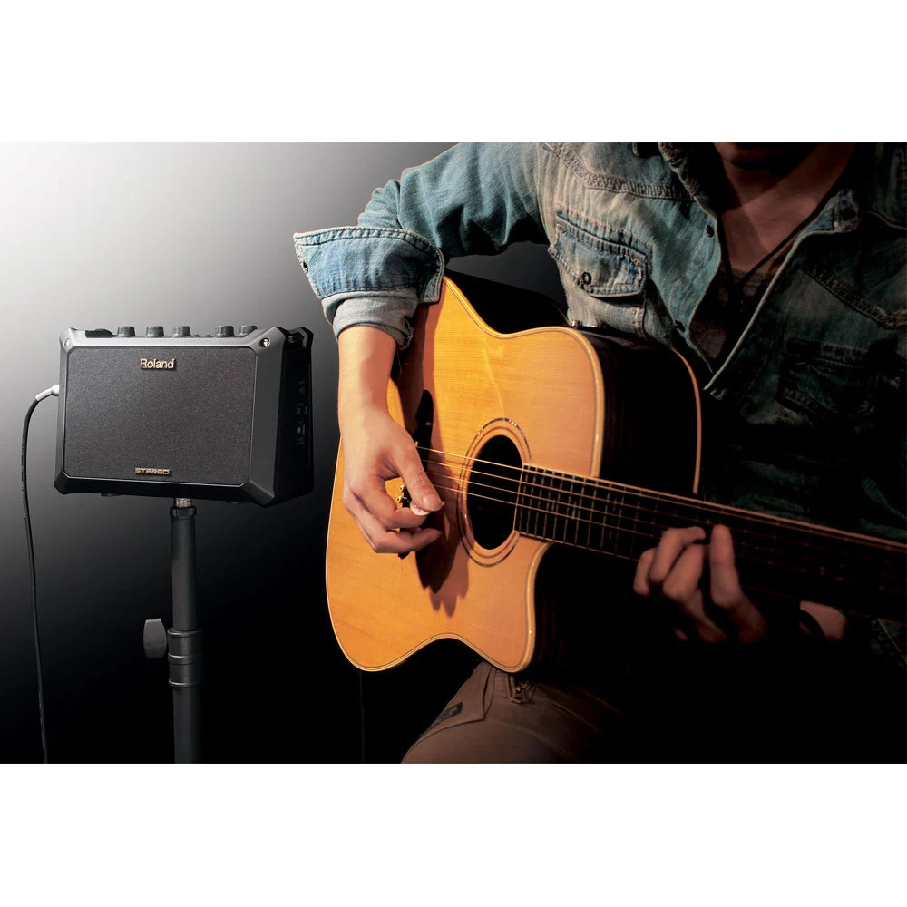 Если вы выступаете в маленьких клубах, Mobile AC очень удобен в работе на сцене. Не смотря на свои габариты, усилитель может звучать действительно громко. Добавьте знаменитого хоруса от Roland, немного ревера для профессионального звучания вашего инструмента и влюбляйте в себя своих слушателей