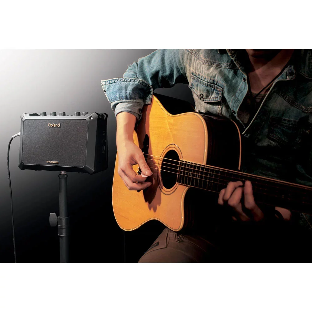 Mobile AC имеет два 4" динамика, дающих мощный стерео звук. Добавьте встроенный стерео хорус - самый знаменитый эффект от Roland - и насладитесь объемным звучанием вашей гитары. Так присутствует ревер и эффект объема для придания глубины звучания вашему инструменту.