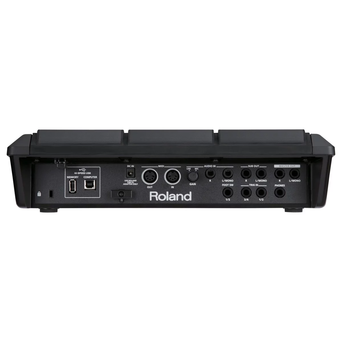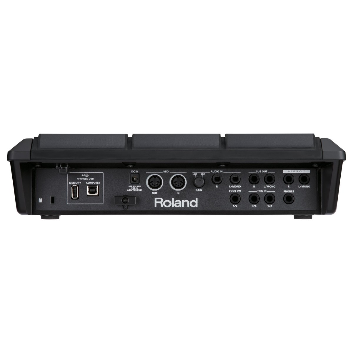 Наушники, MASTER OUT (L/MONO, R), дополнительный выход (L/MONO, R), аудио-вход (L/MONO, R), дополнительные пэды (1/2, 3/4), футсвитч, MIDI IN/OUT, вход для адаптера, USB для подключения к компьютеру