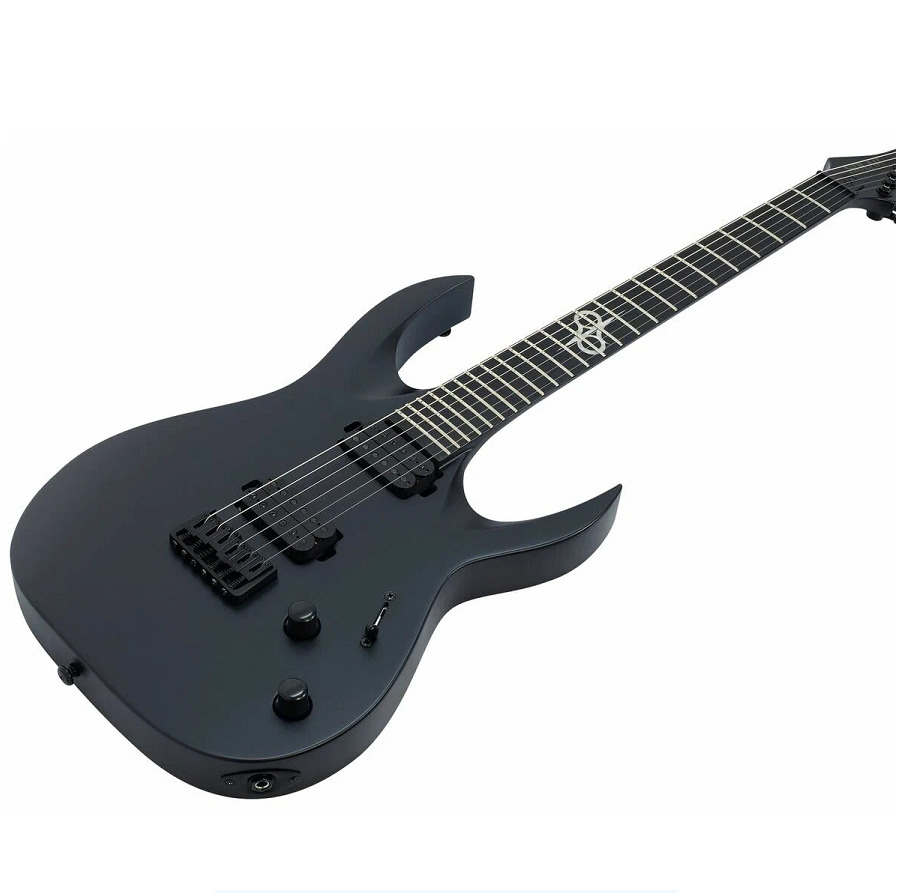 Мрачный и элегантный внешний вид, выразительные срезы на рогах и мощная спецификация позволяют называть Solar A2.6C абсолютно профессиональным инструментом как для выступлений, так и для студийной работы. Примечательными особенностями является добротный фиксированный бридж с креплением струн сквозь корпус и звукосниматели Duncan Solar. которые дают полноценную палитру звучаний, от органически чистого до мощного современного перегруза - всегда с протяжным сустейном и максимальной стабильностью строя. Solar A2.6C имеет вклеенную конструкцию грифа, мензуру 25.5”, корпус из махогани, быстрый, тонкий и очень удобный кленовый гриф на 24 лада с накладкой из черного дерева. На гитару ставятся колки Grover 18:1, графитовый порожек, черная матовая фурнитура и пятипозиционный переключатель. Доступен в цвете carbon black matte (угольно-черный матовый).