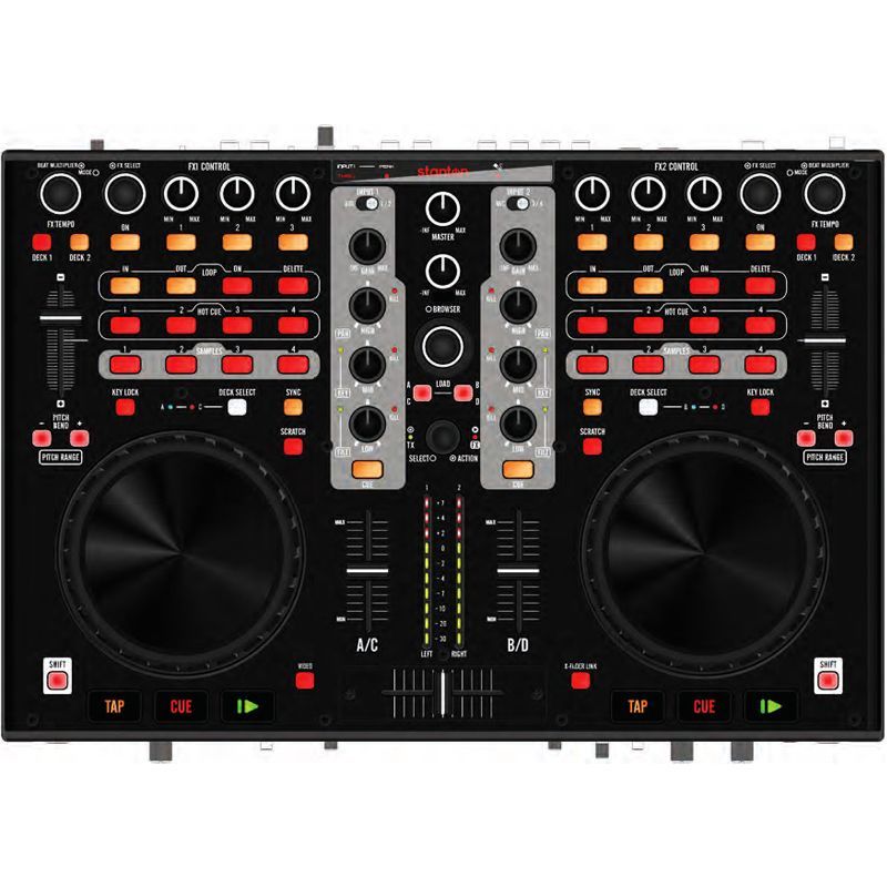 DJ-контроллер Stanton DJC.4 представляет своим пользователям полноценное решение для работы с цифровым и аналоговым сигналом. В комплекте поставки, с расширенной, четырехдековой версией музыкального программного обеспечения Virtual DJ LE, Dj-контроллер позволяет микшировать и работать с четырьмя аудиодеками. Во время работы, пользователи могут осуществлять визуальный контроль за всеми процессами на экране ПК. Встроенный четырёхканальный аудиоинтерфейс позволяет интегрировать в систему аналоговые вертушки и CD в своё выступление в режиме реального времени. Большие сенсорные колеса «джога» обеспечивают комфортное управление скретчем и высотой тона.