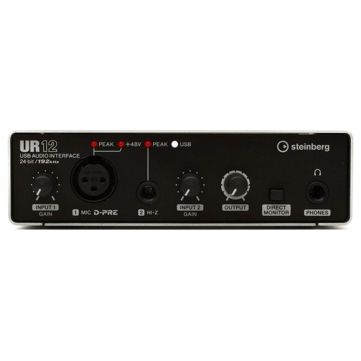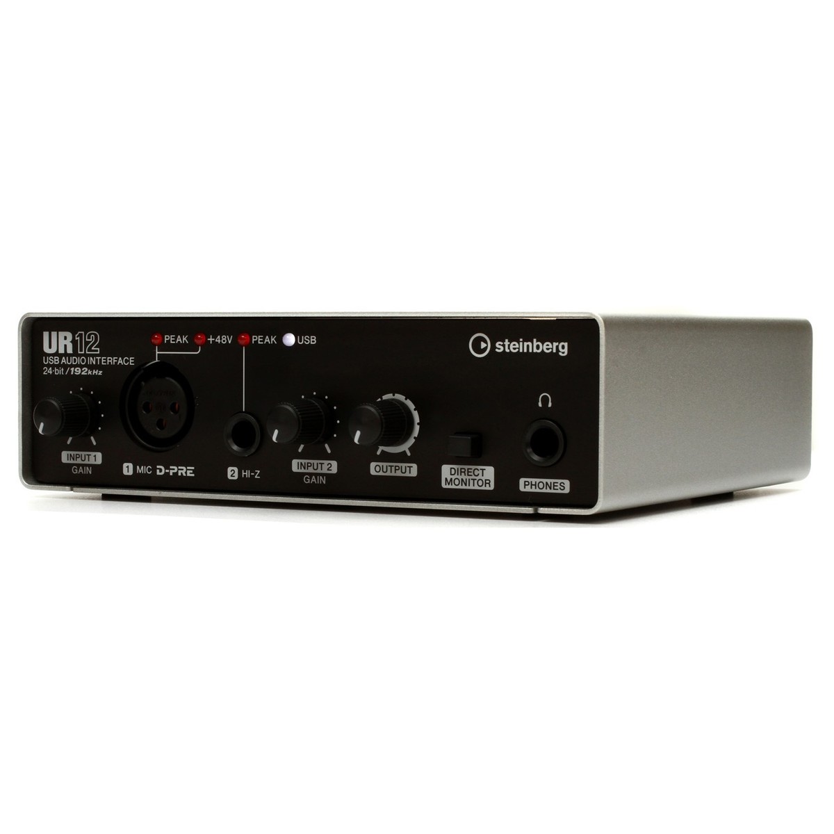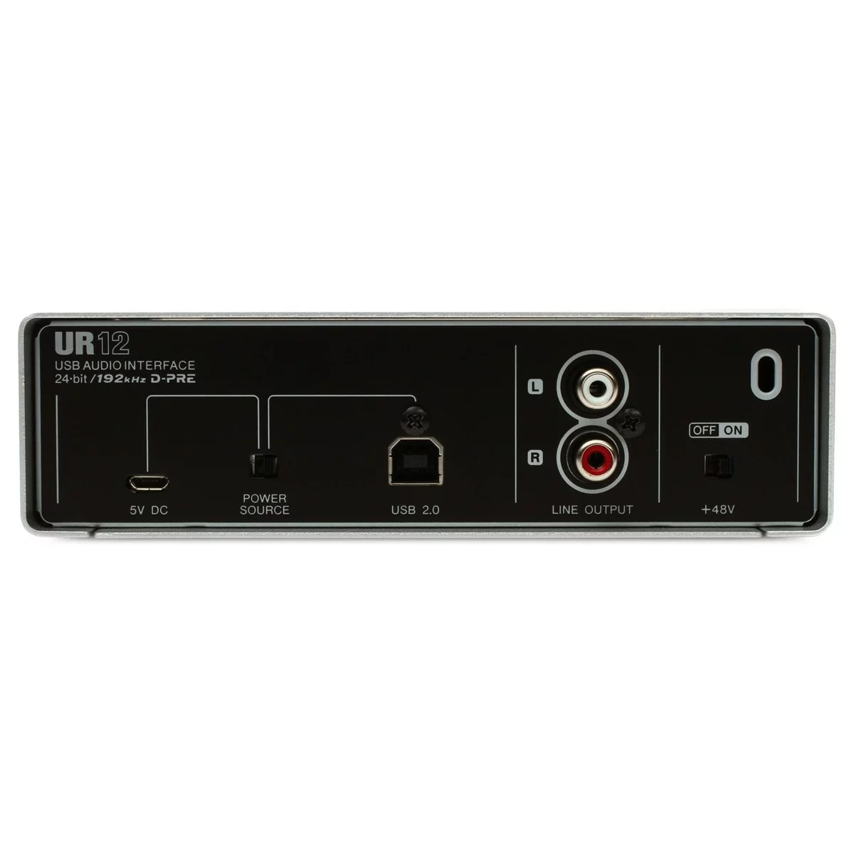 UR12 позволяет записывать звук с качеством записи 24-бит/192кГц. Это позволяет обеспечить профессиональное качество записи.