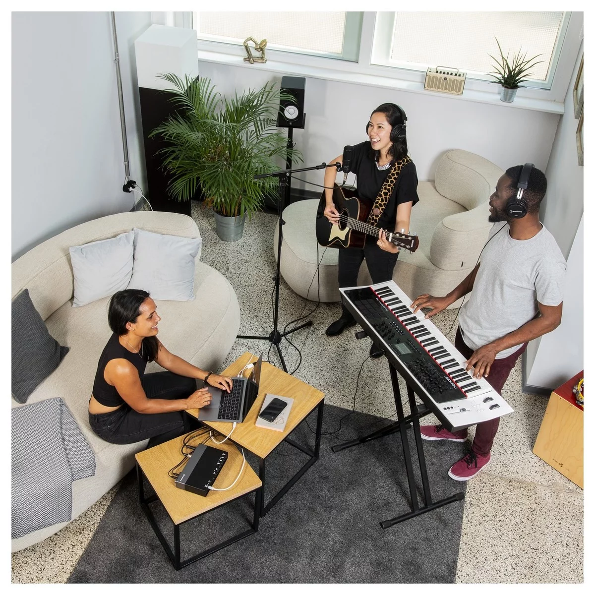 32-битные АЦП/ЦАП, DSP-эффекты с возможностью мониторинга без задержки, совместимость с macOS, Windows и iOS, соединение USB3.1 SuperSpeed и новейший драйвер с более низкой задержкой и большей стабильностью.