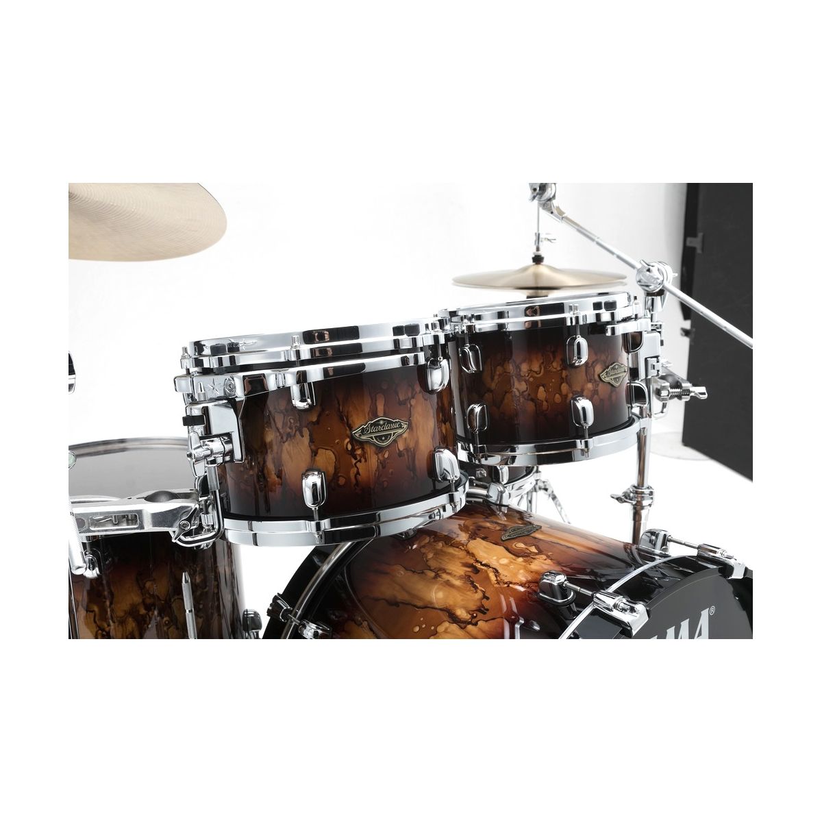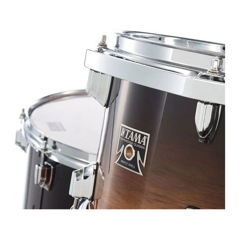 На протяжении более сорока лет серия барабанов Superstar символизировала новаторский дизайн, превосходное качество сборки, безупречный тон и четкую атаку. Superstar Classic сохраняет традиции, поднимая при этом планку качества на новый уровень, удовлетворяя самых взыскательных барабанщиков. И что поразительно делает это по чрезвычайно конкурентоспособной цене. Superstar Classic напоминают оригинальные барабаны серии Superstar. Классический Т-образный значок TAMA и обтекаемые облегченные одинарные лаги указывают на то, что в 70-е годы прошлого столетия искусство было менее требовательным к инструментам, в то время как гениальная система крепления Star-Mount и новые более тонкие корпусы, сделанные из 100-процентного клена, затмевают всех в своем классе. Эти барабаны выглядят восхитительно благодаря внешнему покрытию, сделанному из полированной коры сосны, которая обладает сложным и красивым рисунком натуральной древесины, придающей этим барабанам экстраординарный внешний вид.