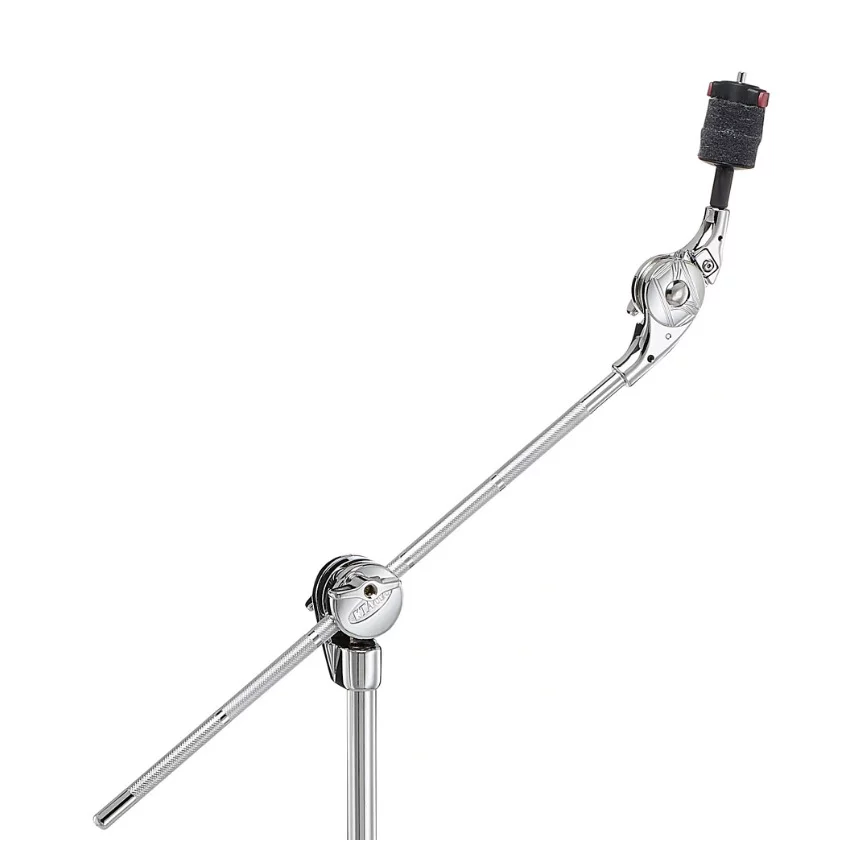 TAMA HC83BW ROADPRO BOOM CYMBAL STAND – наклонная стойка для тарелки оригинальной разработки Tama из популярной линейки RoadPro. Эта удобная и надежная стойка позволяет снимать и устанавливать тарелку буквально одним движением благодаря запатентованной технологии Cymbal Mate. Угол наклона тарелки быстро и точно настраивается (запатентованная система Quick-Set Tilter). Такая система также отличается повышенной износостойкостью. Специальные нейлоновые прокладки обеспечивают надежность и долговечность соединений, а также гладкость регулировки. Стойка оснащена тремя прочными двойными ножками с крупными прорезиненными наконечниками, которые исключают проскальзывание по полу даже при самой интенсивной игре. Диаметр трубок базы стойки – 28,6 мм. Длина выносной стойки для закрепления тарелки – 45 см. Если же место для барабанной установки ограничено, стойку можно использовать как прямую, сняв выносную секцию и разместив его внутри верхней трубки вертикальной стойки. Модель выполнена из высококачественной стали, представлена в серебристом цвете с черной фурнитурой.