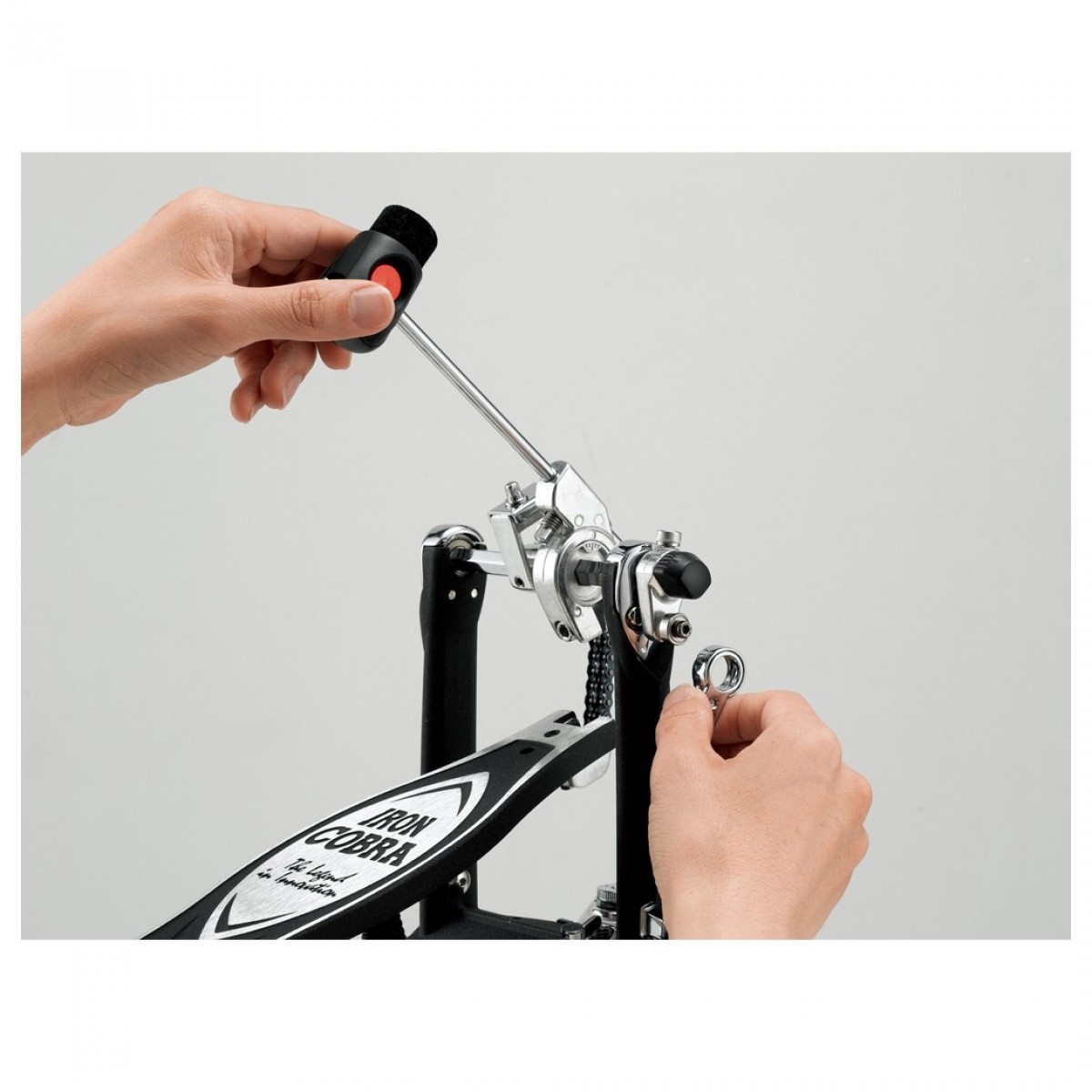 Tama HP900RN Iron Cobra Drum Pedal With Case - это одиночная педаль для барабана с цепным приводом. Педаль поставляется в фирменном кейсе. Педаль имеет возможность настройки угла наклона футборда (опционально), колотушки и натяжения цепи. Кроме этого педаль оснащена регулируемым зажимом, для крепления к обручу басового барабана. Ножки педали оснащены шипами (опционально) для предотвращения скольжения. Педаль имеет простой и удобный механизм настройки угла наклона колотушки, стальной зажим обруча с барашковым винтовым зажимом, механизмом натяжения цепи с прочным фиксатором положения, стальные тяги опорной рамы педали и двойной цепной привод.