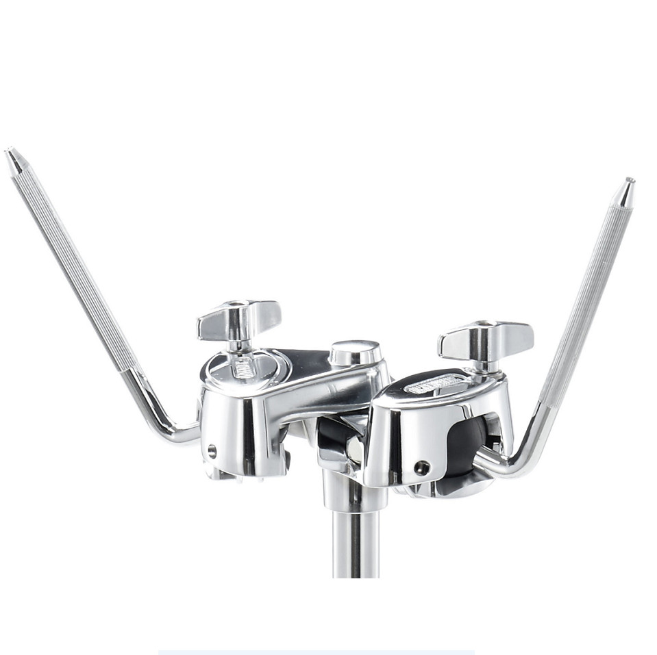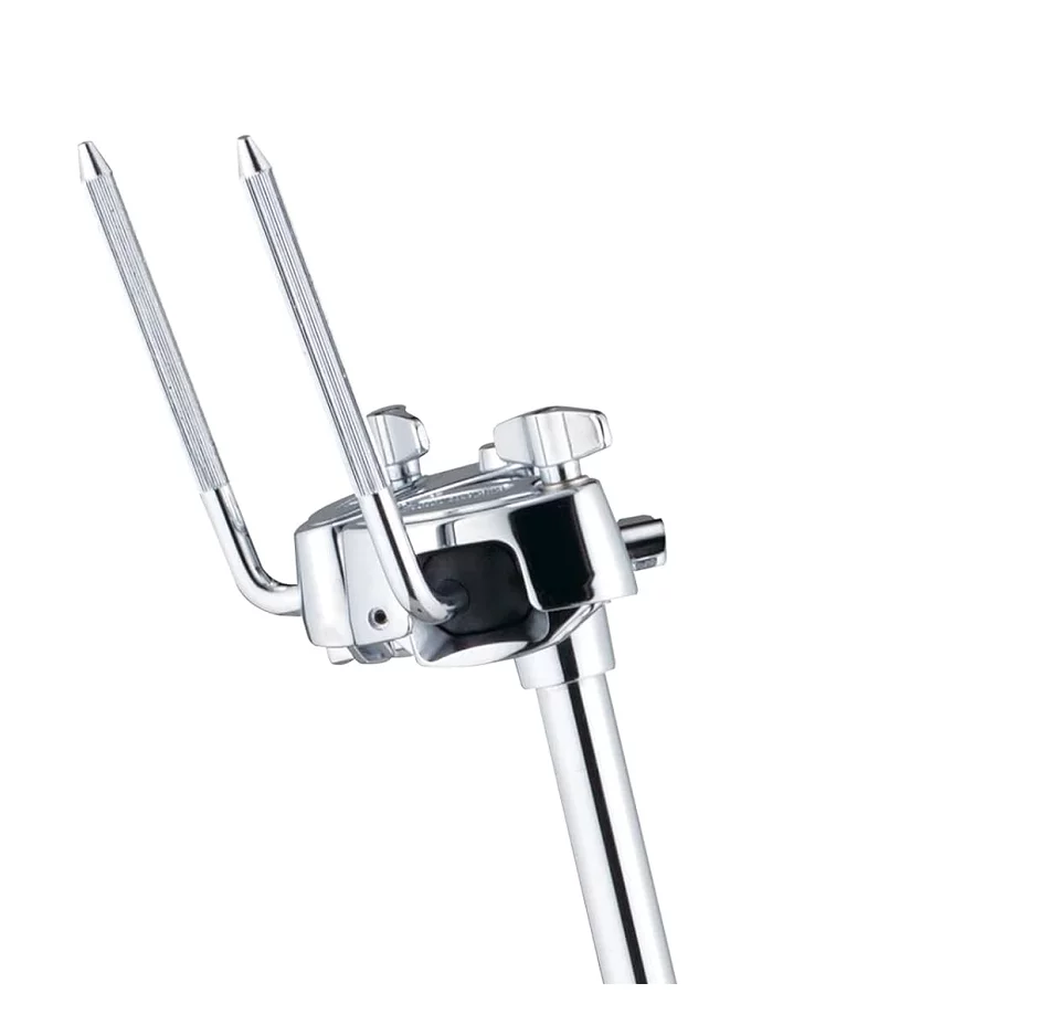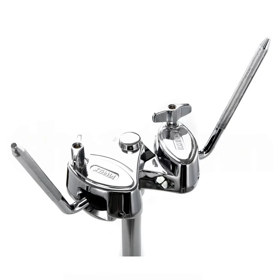 TAMA HTW839W ROADPRO DOUBLE TOM STAND – стойка для двух томов оригинальной разработки Tama из популярной линейки RoadPro. Эта удобная и надежная стойка позволяет не только прочно зафиксировать барабаны, специальная конструкция Stilt позволяет изменять расположение барабанов, придвигая их ближе или отодвигая дальше. Перемещение самой стойки для этого не требуется, достаточно изменить угол ее наклона. Угол наклона барабанов также удобно регулируется за счет системы Omni-ball. Высоту расположения и угол наклона каждого барабана можно настроить индивидуально. Специальные нейлоновые прокладки обеспечивают надежность и долговечность соединений, а также гладкость регулировки. Стойка оснащена тремя прочными двойными ножками с крупными прорезиненными наконечниками, которые исключают проскальзывание по полу даже при самой интенсивной игре. Диаметр трубок базы стойки – 28,6 мм. Модель выполнена из высококачественной стали, представлена в серебристом цвете с черной фурнитурой.