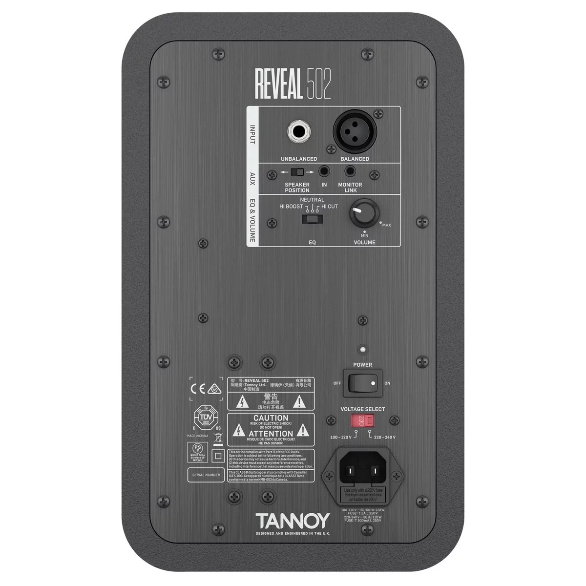 Tannoy Reveal 502 - студийный монитор ближней зоны, предназначенный для использования в персональных домашних студий. Reveal 502 оснащен высокоэффективным низкочастотным динамиком 5", 1" твитером с мягким куполом и позиционируется как компактное решение для малых помещений и площадей, где требуется расширенный диапазон сбалансированного звука. Мощный Bi-amp усилитель в 75 Вт и активный кроссовер обеспечивают мощный и сбалансированный звук на любых уровнях громкости. Тонко настроенные фильтры кроссовера, в создании которых участвовал знаменитый Пол Милс (Dr. Paul Mills), обеспечат наиболее комфортное восприятие звука, чтобы слушатели могли передвигаться по аудитории или рабочей студии, не теряя стерео-образа собственных миксов.