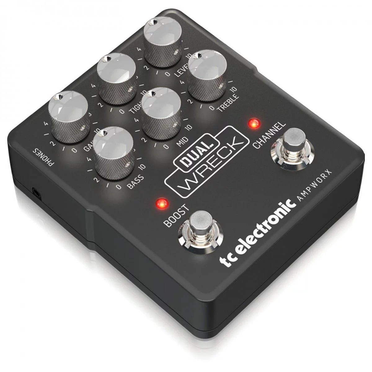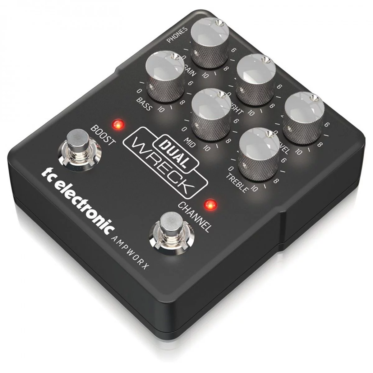 TC ELECTRONIC DUAL WRECK PREAMP - это двухканальная педаль гитарного предусилителя, которая точно воссоздает тяжелое звучание культовых американских усилителей MESA BOOGIE 90-х годов, но в удобном и компактном корпусе с независимым управлением каналами, управлением бустом посредством футсвитча, официальным импульсами Celestion cab sim и выделенными выходами на DI/наушники.