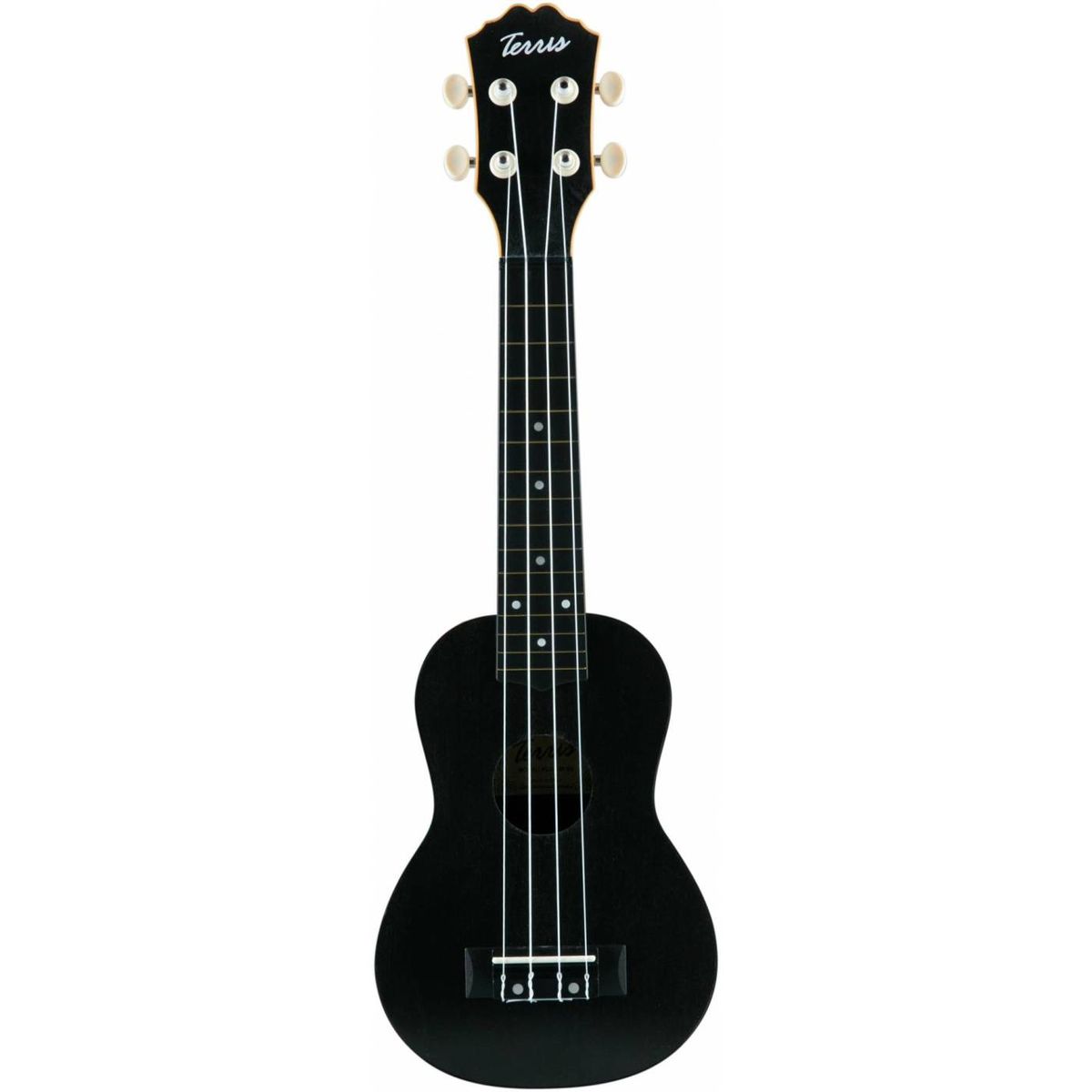 укулеле сопрано, верхняя дека липа, корпус пластик, цвет черный