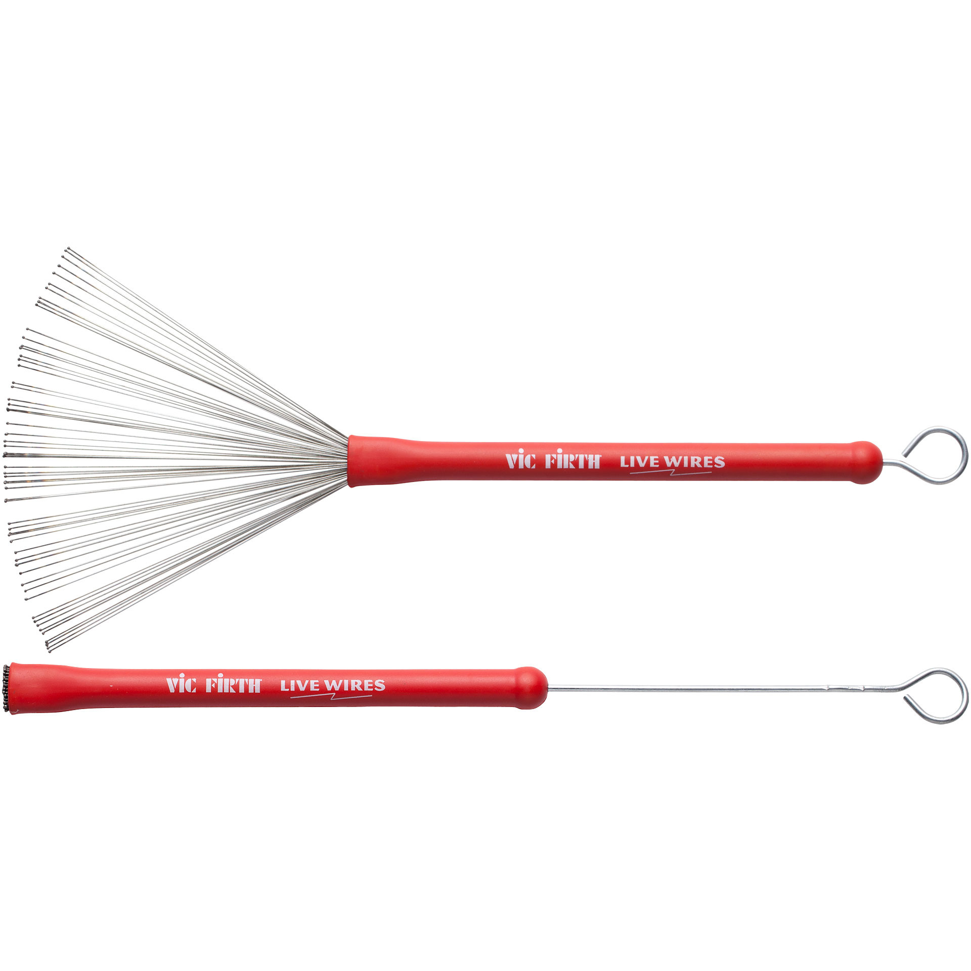Металлические щетки Live Wires отличаются от других моделей щеток Vic Firth наличием небольшого металлического шарика на конце каждой проволоки. Это позволяет получить более острый и яркий звук тарелок и барабанов при игре данными щетками.