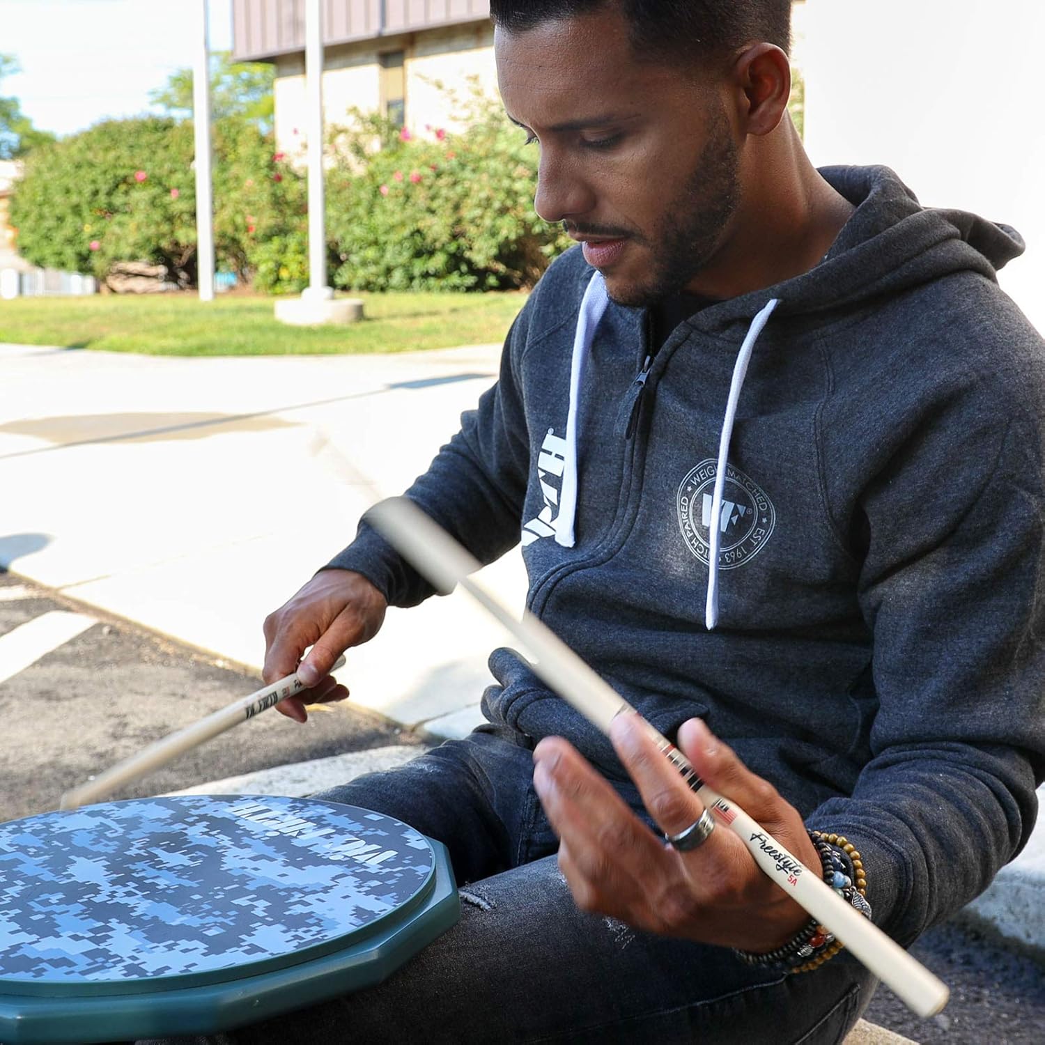 Забавный графический вариант традиционного тренировочного пэда Vic Firth Digital Camo Practice Pad имеет сплошной принт, отзывчивую игровую поверхность, прочную основу и нескользящую подложку, которая удерживает коврик на месте во время использования. Идеально подходит для начинающих барабанщиков, этот силиконовый пэд обеспечивает отличный отклик для обучения технике игры на барабанах. Диаметры 6" и 12" Силиконовая накладка с печатным рисунком на основе МДФ, нескользящая резиновая подложка. Цифровой камуфляж на поверхности подушечки, серая основа Нескользящая подкладка для удержания пэда на месте во время тренировки