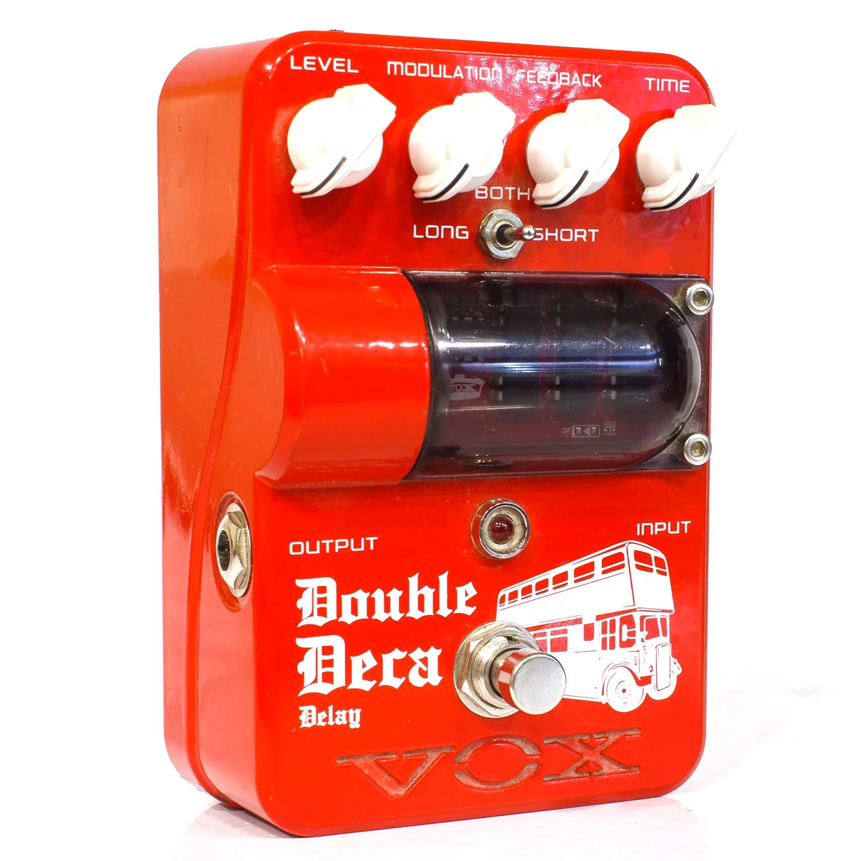 «Универсальный дилей»Итак, Vox создали пышную, густую педаль задержки (дилей) Double Deca Delay. Это VOX TG2-DDDL DOUBLE DECA DELAY. Используя трио знаменитых чипов 3205 BBD, Double Deca Delay обеспечит Вас глубоким, богатым дилеем – ровным счетом таким, который Вы пожелаете. Выбирайте между короткими и длинными режимами задержки и смешивайте их вместе для создания тонального характера окружающей среды. А независимый регулятор модуляции тем временем добавит хоруса в Ваше звучание. В целом, эта педаль призвана охватить весь диапазон от традиционного ленточного эхо-дилея до 900 мс просторного дилея. Расширьте свою тональную палитру с VOX TG2-DDDL DOUBLE DECA DELAY!Схема, адаптированная для достижения идеального тонаКогда Vox взялись за разработку VOX TG2-DDDL DOUBLE DECA DELAY, за основу они взяли стремление включить все необходимое в эту педаль. В данной педали эффектов использованы исключительно отдельные детали, среди которых находятся резисторы, транзисторы, конденсаторы и многое другое. VOX TG2-DDDL DOUBLE DECA DELAY сочетает в себе олдскульный дизайн и три знаменитых чипа 3205. В режиме короткой задержки используется только один из чипов, при включении длинной в работу вступают все три вместе – именно поэтому возможности данного дилея столь масштабны. А в целом же, каждый элемент VOX TG2-DDDL DOUBLE DECA DELAY был создан таким образом, чтобы гарантировать пользователю оптимальные тон и отклик.Полноценная обходная конструкция, гарантирующая тональную частотуВы приобретаете педаль ради звучания, которое она вам дарит. Но когда Вы выключаете ее, Вам нужно, чтобы она вела себя тихо и не беспокоила Вашу цепь сигнала. VOX TG2-DDDL DOUBLE DECA DELAY оснащена обходным переключателем, который позволит сохранить чистоту Вашего тона в любой ситуации. Эта педаль не окрасит Ваш звук при выключении.Педаль, разработанная для активной эксплуатацииНет ничего хуже педали, которая разваливает после пары лет использования. Прочный алюминиевый литой корпус VOX TG2-DDDL DOUBLE DECA DELAY гарантирует Вам длительный срок беспроблемной эксплуатации педали.В итоге мы имеем многофункциональный дилей, способный в полной мере решать задачи музыканта в пределах зоны своей компетенции. Если Вы ищете надежный и качественный дилей, обязательно обратите свое внимание на VOX TG2-DDDL DOUBLE DECA DELAY и попробуйте его в действии!Особенности VOX TG2-DDDL DOUBLE DECA DELAY• Аналоговая педаль типа «дилей», оснащенная знаменитой системой чипов 3205• 3 типа задержки – короткий, длинный и смешанный• Регулятор модуляции, добавляющий к сигналу эффект хоруса• Полностью дискретная схема• Полноценная обходная конструкция• Прочный алюминиевый литой корпус• Работа от 6 батареек класса АА или опционального 9-вольтового адаптераТехнические характеристики VOX TG2-DDDL DOUBLE DECA DELAYТип: дилейВход: инструментальныйВыход: 1/4""Встроенный источник питания: отсутствует
