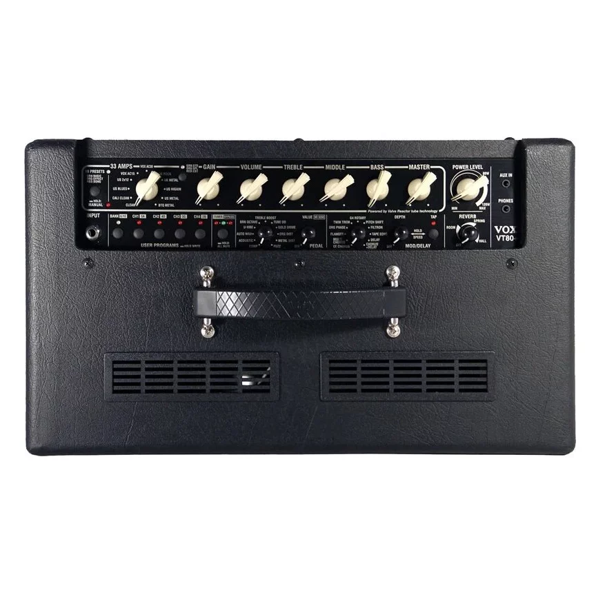 - В ламповой схеме VOX Valve Reactor используется вакуумная лампа 12 AX7, обеспечивающая аутентичный ламповый звук.