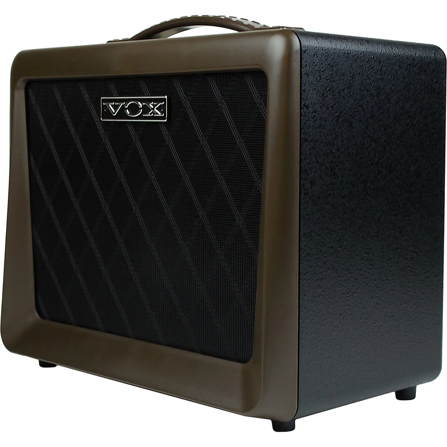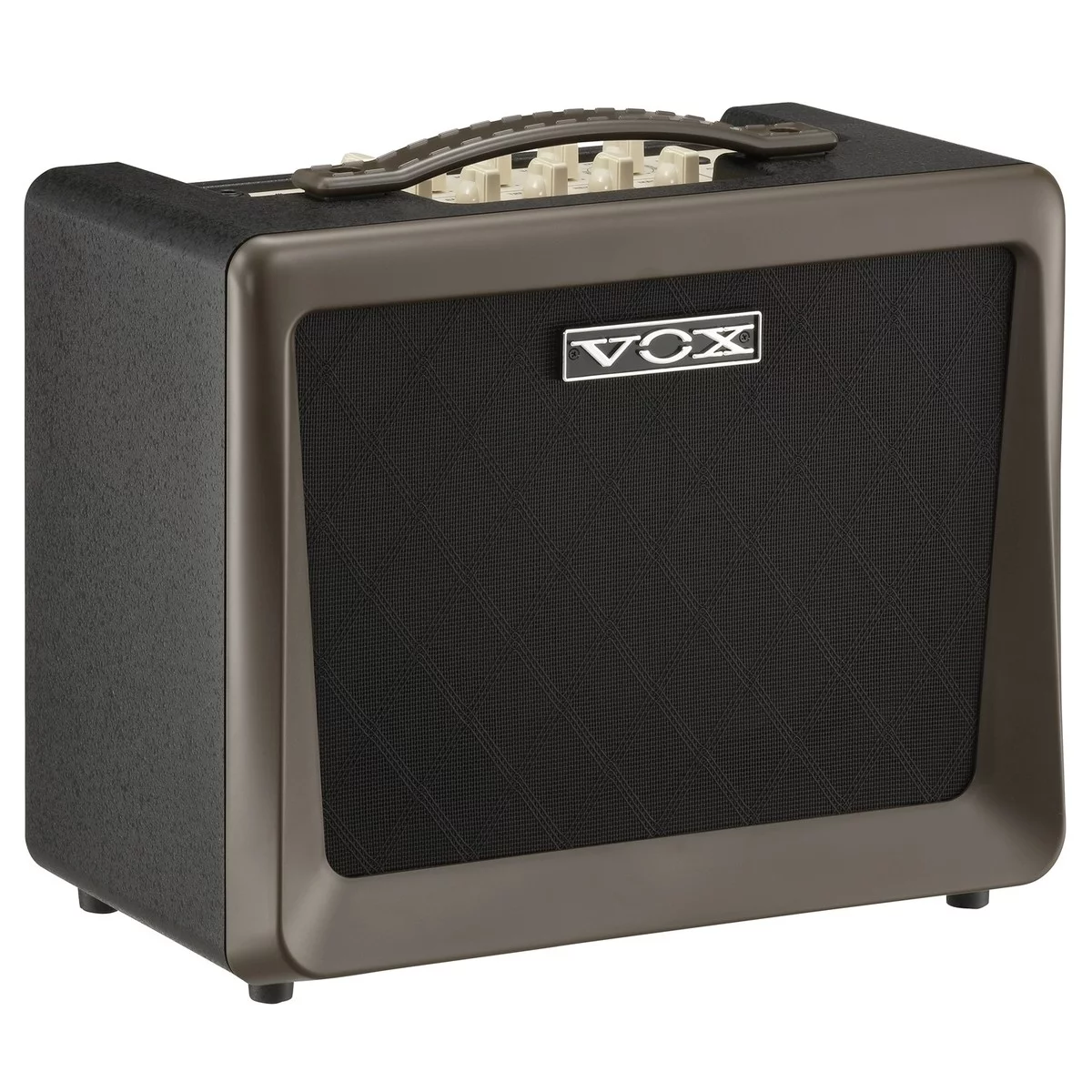 VOX VX50-AG – лёгкий и компактный 50-ваттный комбоусилитель для акустической гитары, пополнивший линейку оборудования VX. Модель оснащена новыми вакуумными лампами Nutube и позволяет передать звучание акустики максимально чисто, естественно и без дополнительной окраски. Красивый, тёплый, богатый и насыщенный звук ламп Nutube отличается прекрасной детализацией и позволяет великолепно передать все нюансы звучания инструмента. VOX VX50AG оснащен 8-дюймовым коаксиальным динамиком плюс твитером. Конструкция кабинета обеспечивает густые и плотные низкие частоты. Предусмотрено два канала: инструментальный и микрофонный, с индивидуальными регуляторами громкости. Звук настраивается с помощью эквалайзера, есть возможность использования эффектов. Комбоусилитель оснащен входом для микрофона с фантомным питанием, таким образом представляя удобное решение «всё в одном» для выступлений. Его можно также использовать для сценического мониторинга. Возможности коммутации включают вход AUX, разъем для подключения наушников и линейный выход. Дополнительное преимущество для концертирующих музыкантов – это небольшой вес (всего 4,1 кг) и габариты усилителя. Модель отличается стильным дизайном в «органической» коричнево-черной цветовой гамме.