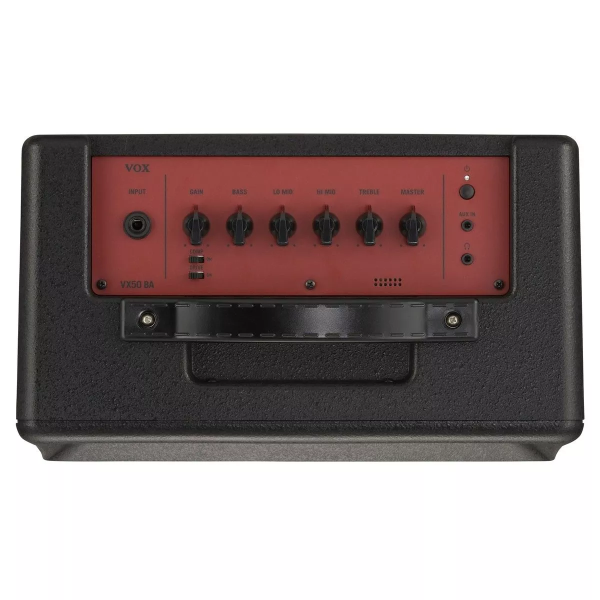 VOX VX50-BA – лёгкий и компактный 50-ваттный комбоусилитель для бас-гитар, пополнивший линейку оборудования VX. Модель оснащена новыми вакуумными лампами Nutube и позволяет получить тёплый, богатый и насыщенный звук, характерный для ламповых усилителей. VOX VX50BA оснащен 8-дюймовым динамиком собственной разработки, обеспечивающим мощный басовый звук. Цельная конструкция кабинета из прочного АБС пластика обеспечивает минимальный вес и при этом густые и плотные низкие частоты. Звук настраивается с помощью четырёхполосного эквалайзера и компрессора, незаменимого элемента басовых усилителей. Также можно использовать эффект овердрайв. Возможности коммутации включают вход AUX, разъем для подключения наушников и прямой выходной разъем TRS для подключения внешней акустики. Дополнительное преимущество для концертирующих музыкантов – это небольшой вес (всего 4,5 кг) и компактные габариты усилителя. Модель отличается стильным дизайном в эффектной красно-черной цветовой гамме с металлической решеткой с крупной сеткой, выгодной демонстрирующей динамик.