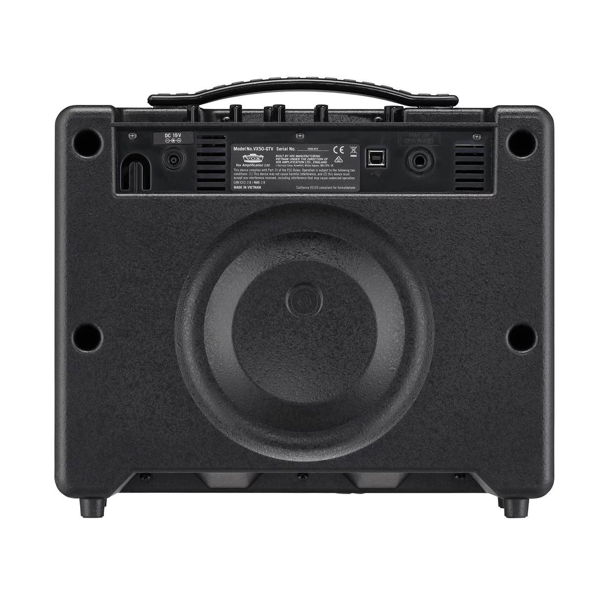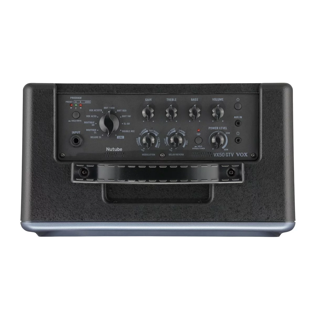 Модель оснащена вакуумной лампой нового поколения Nutube 6P1 и позволяет получить тёплый, богатый и насыщенный звук, характерный для ламповых усилителей. Использование запатентованной технологии VET (Virtual Element) позволяет добиться реалистичного звучания. VX50-GTV может симулировать звук 11 разных моделей усилителей, в том числе классического AC30. Новый тип усилителя «Line» поддерживает также акустические гитары. Для модификации звука предусмотрена секция эффектов: модуляция и дилей/ревербератор, по четыре типа для каждого из эффектов, что дает всего восемь различных вариантов. Конструкция кабинета из прочного АБС пластика обеспечивает минимальный вес и уменьшает вибрации, при этом он обладает отличными акустическими свойствами, позволяет получить очень мощный для такого компактного усилителя звук, густые и плотные низкие частоты. USB аудио интерфейс позволяет соединяться с компьютером для осуществления записи напрямую. Вход AUX позволяет проигрывать записи с внешних источников, а разъем для подключения наушников оснащен симулятором кабинета для получения максимально естественного звучания. Дополнительное удобство – наличие встроенного тюнера. Вес усилителя – всего 4,1 кг.