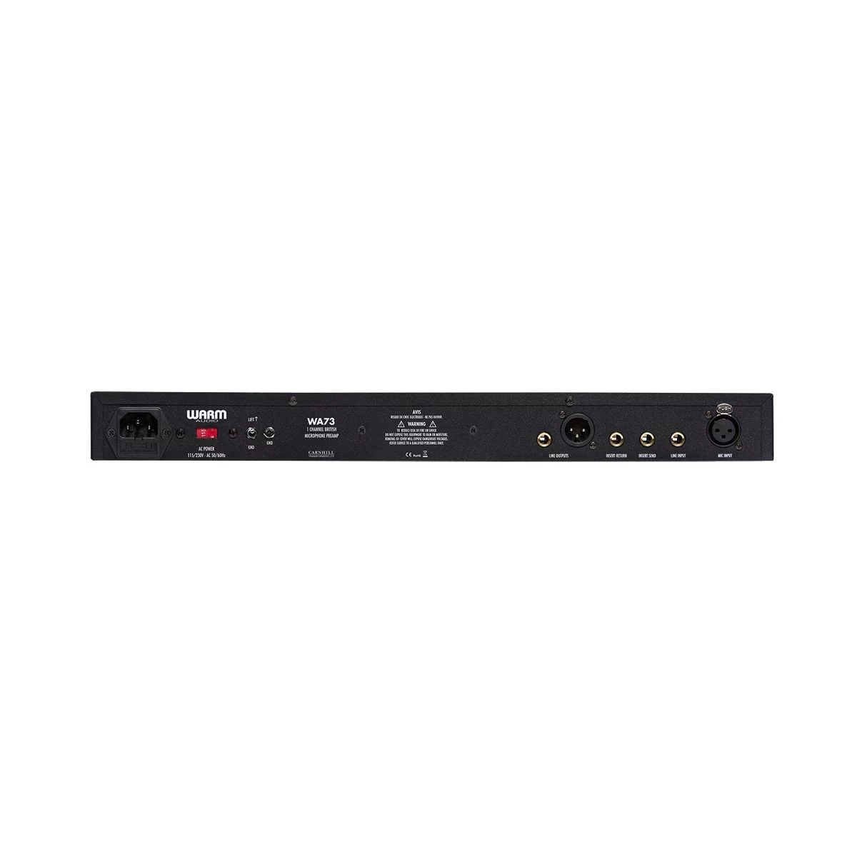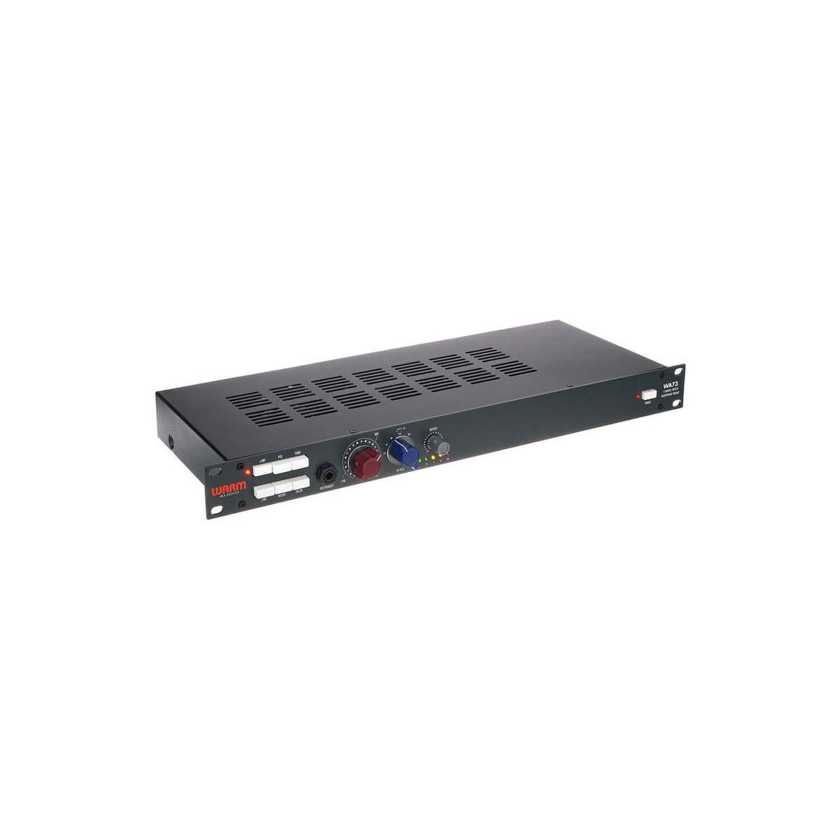 В Warm Audio WA73 в итоге можно производить усиление на позициях до 80 дБ, переключатель усиления активизируется с помощью резистора. Кнопка TONE на лицевой панели устройства меняет сопротивление входного трансформатора для создания переменного тона. Также на поверхности есть переключатель полярности. Предусилитель может предоставлять и фантомное питание 48В для конденсаторных микрофонов, у него есть четырехпозиционный, основанный на катушке индуктивности, ВЧ-фильтр 50, 80, 160 и 300 Гц. Наконец, предусилитель имеет рэковый корпус высотой 1U (1RU), и его можно размещать в рэковой стойке.