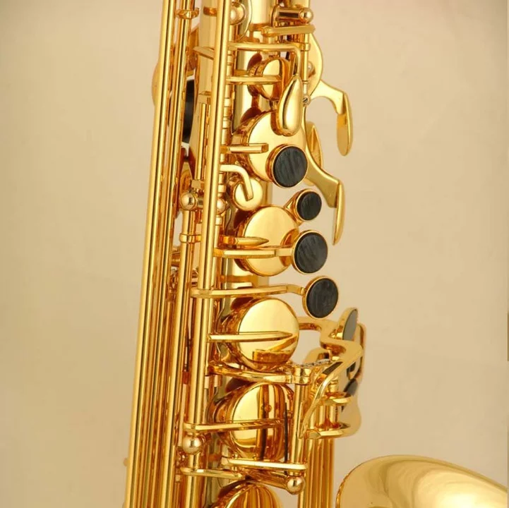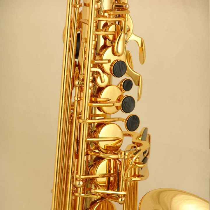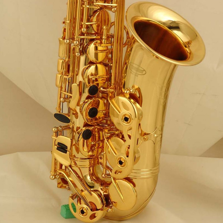 саксофон-альт Eb студенческий, лак-золото, высокая F#, пружины из нержавеющей стали, итальянские подушки, премиум-кейс, мундштук, лигатура, колпачoк, аксессуары.