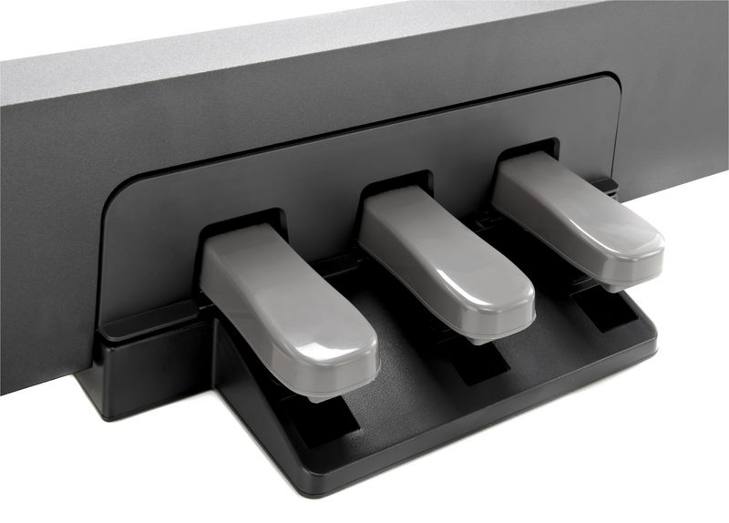 Правая педаль – поднимает сразу все демпферы, так что все сыгранные ноты продолжают звучать во время удержания педали. Кроме того P-95 поддерживает эффект полунажатия на правую педаль, когда, как и в акустическом фортепиано, звук меняется при неполном поднятии демпферов*.
