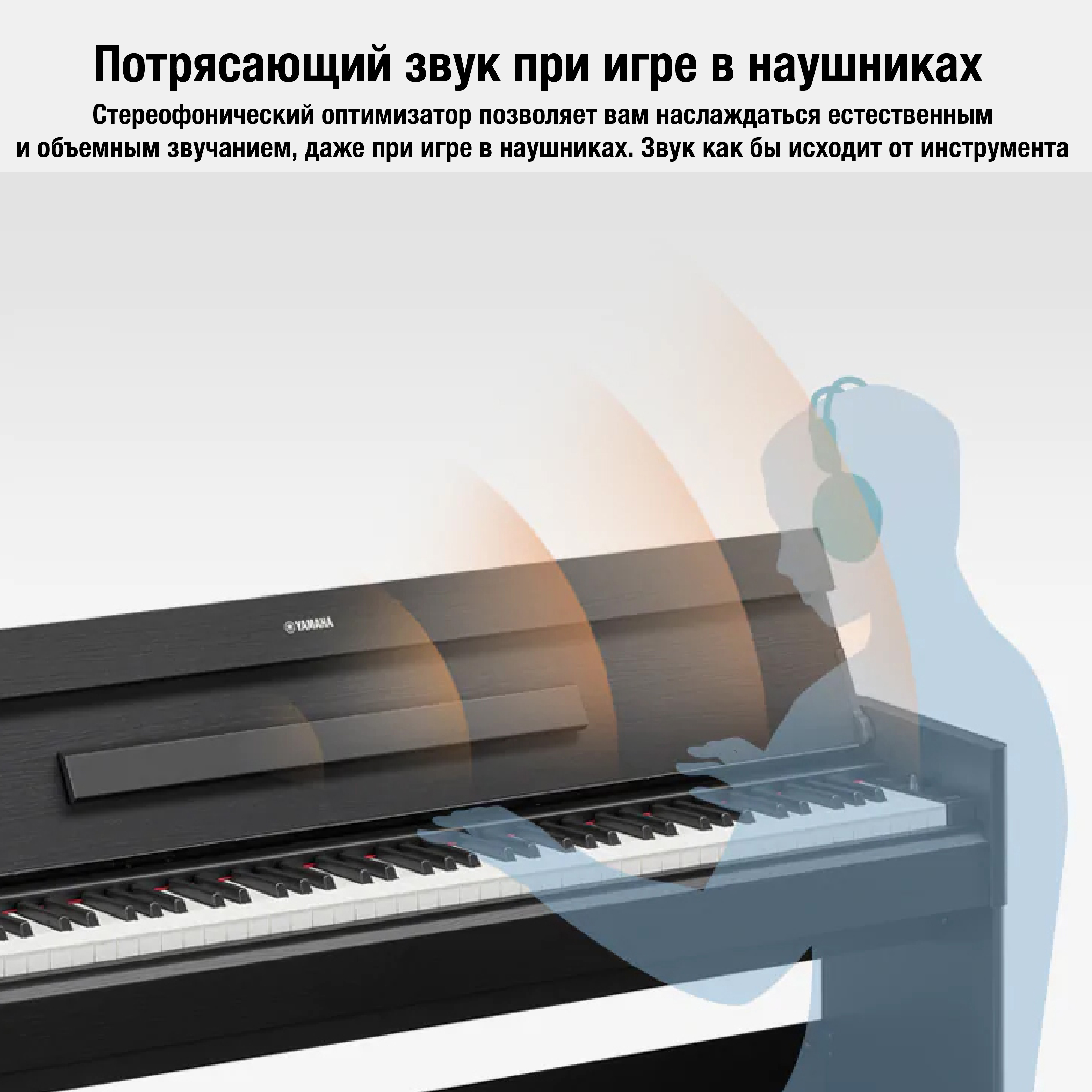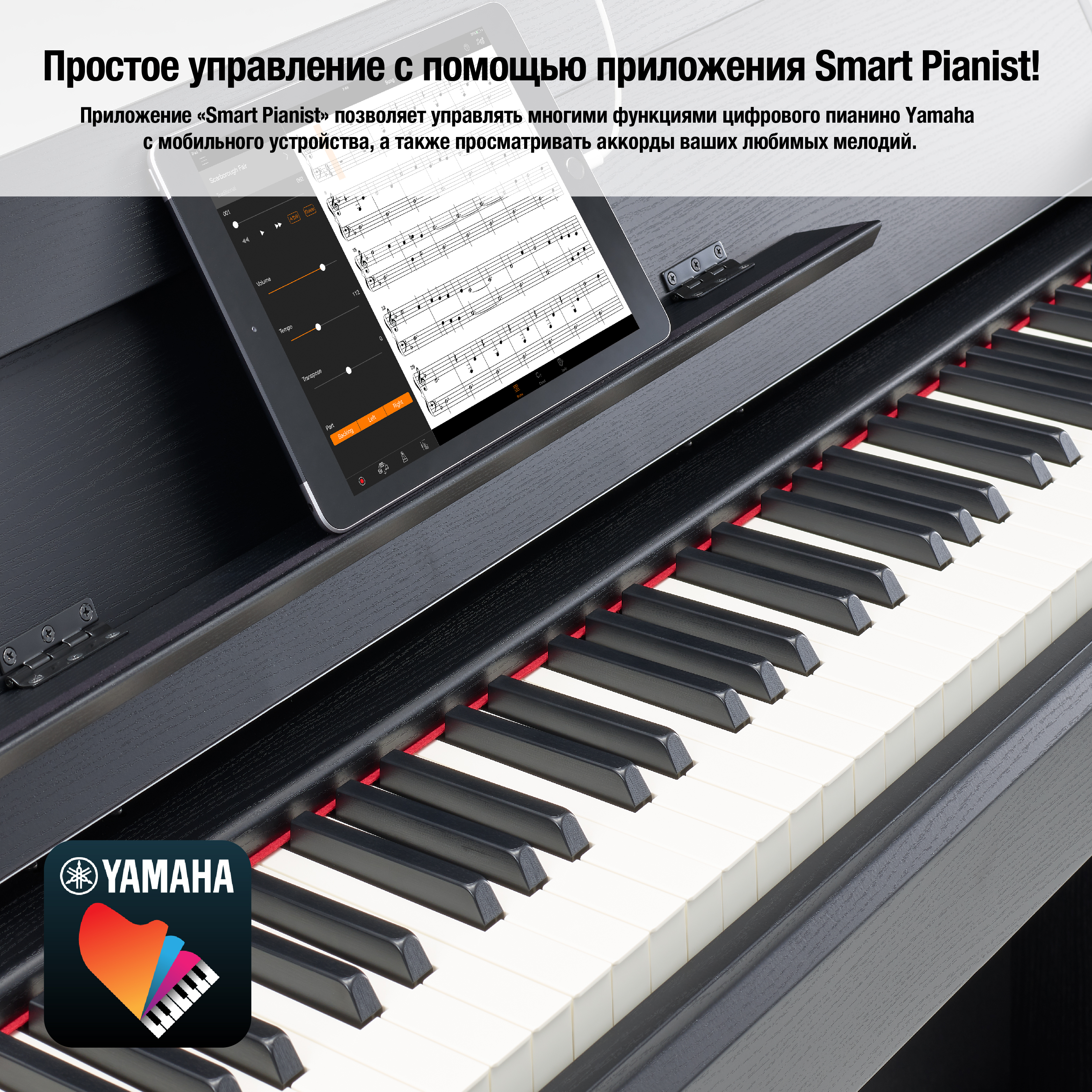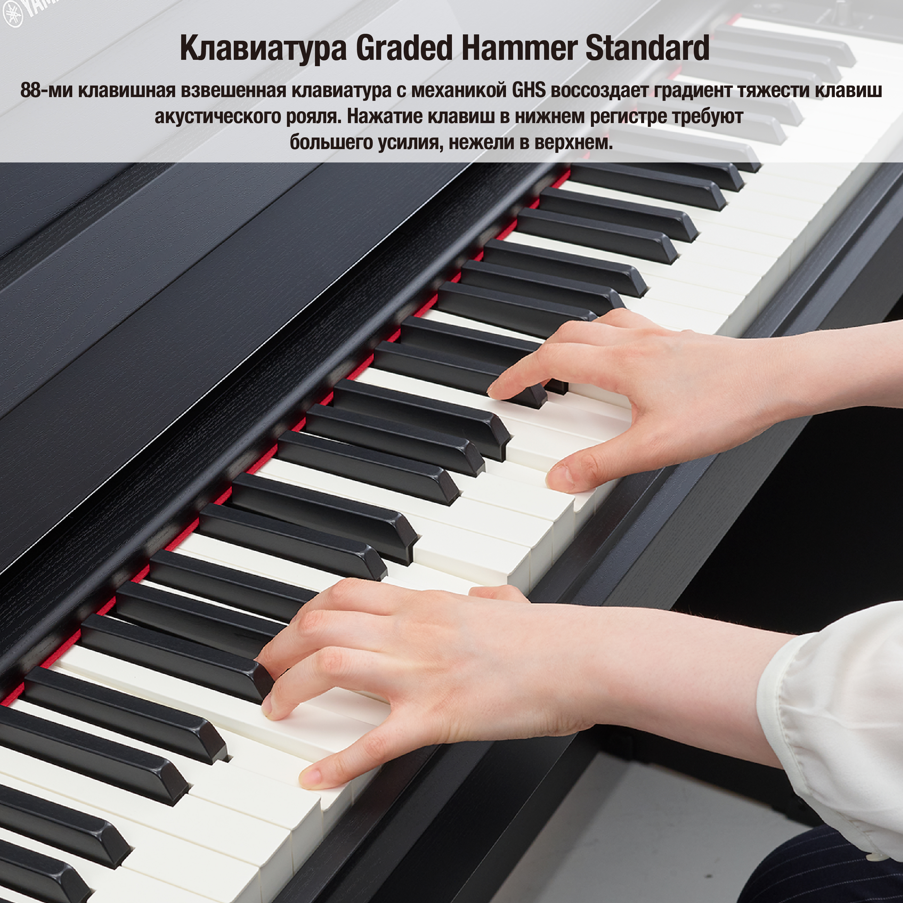 Электропиано. Клавиатура GHS (Graded Hammer Standard) с матовым черным покрытием клавиш. Звук фортепиано Yamaha CFX. Полифония 192. Количество тембров 10. Реверберация 4 типа. Количество встроенных композиций 10 композиций для демонс