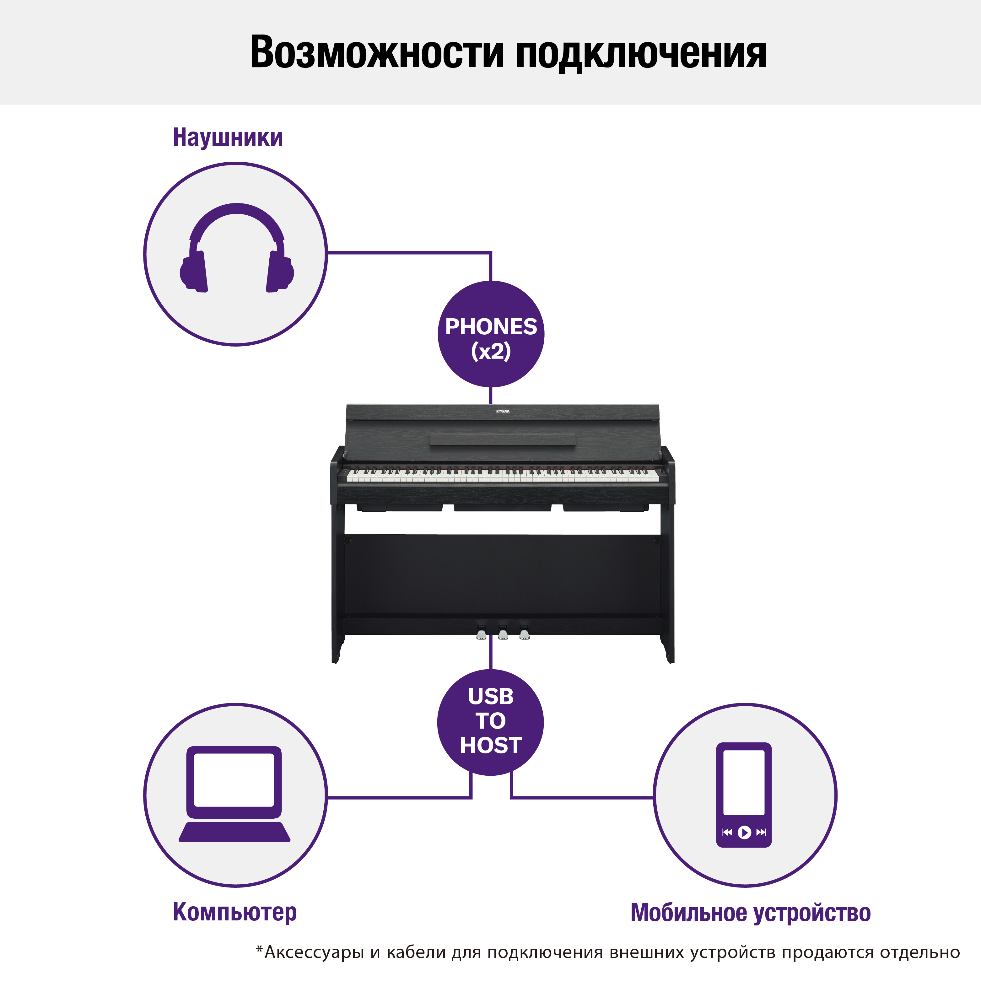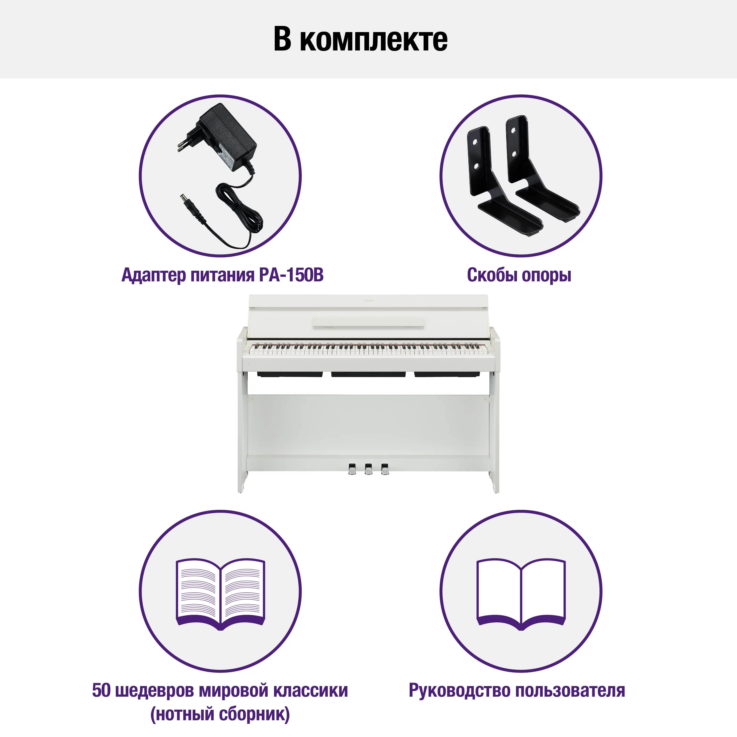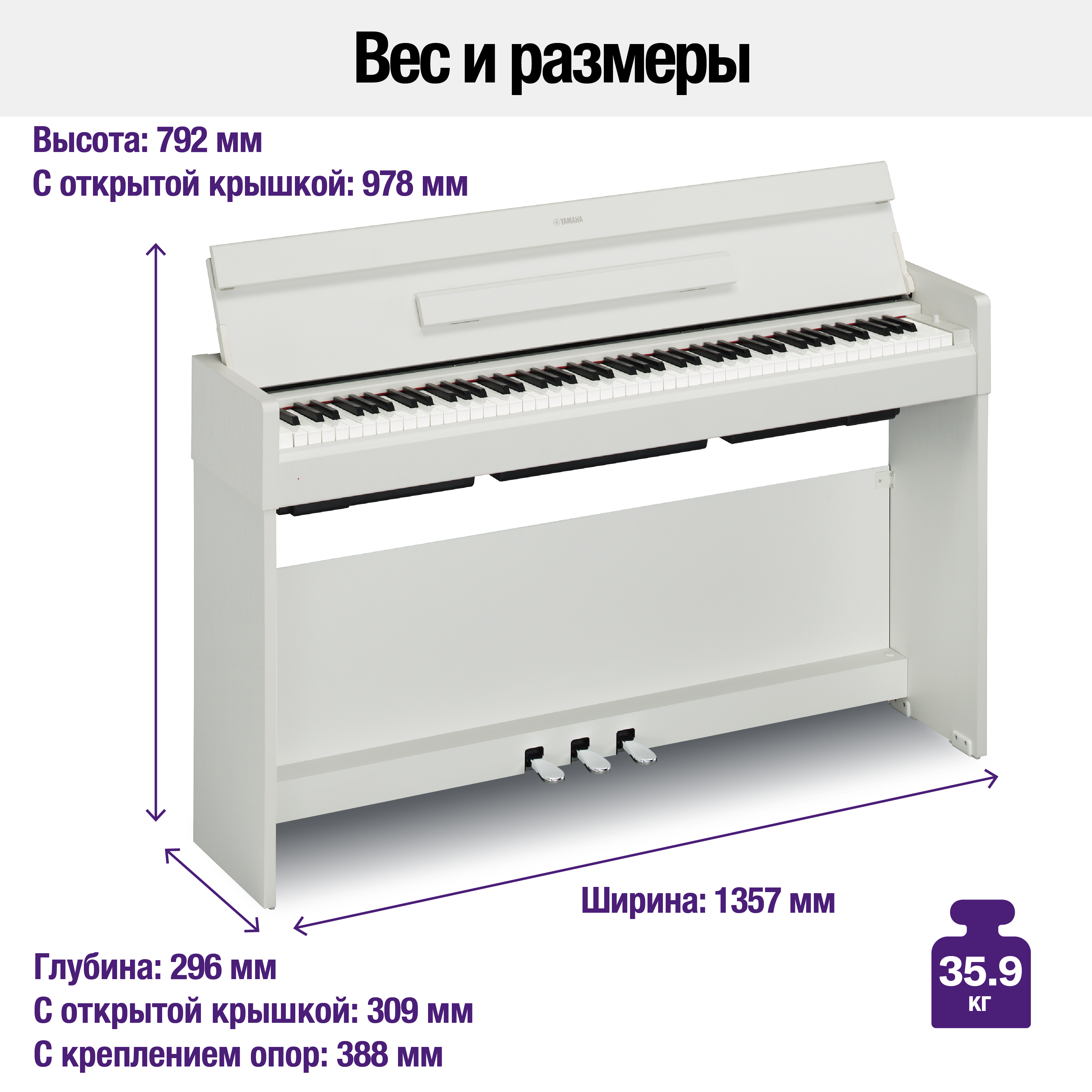 Электропиано. Клавиатура GHS (Graded Hammer Standard) с матовым черным покрытием клавиш. Звук фортепиано Yamaha CFX. Полифония 192. Количество тембров 10. Реверберация 4 типа. Количество встроенных композиций 10 композиций для демонс