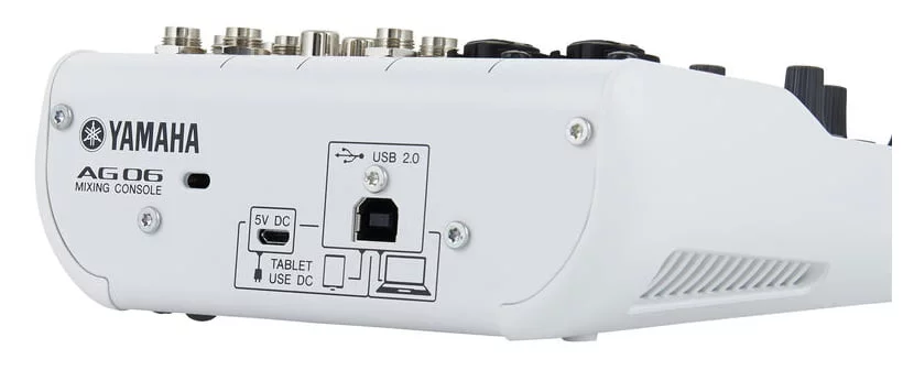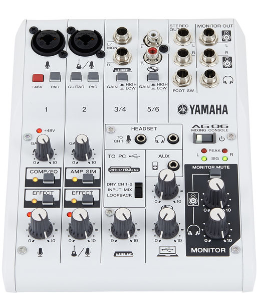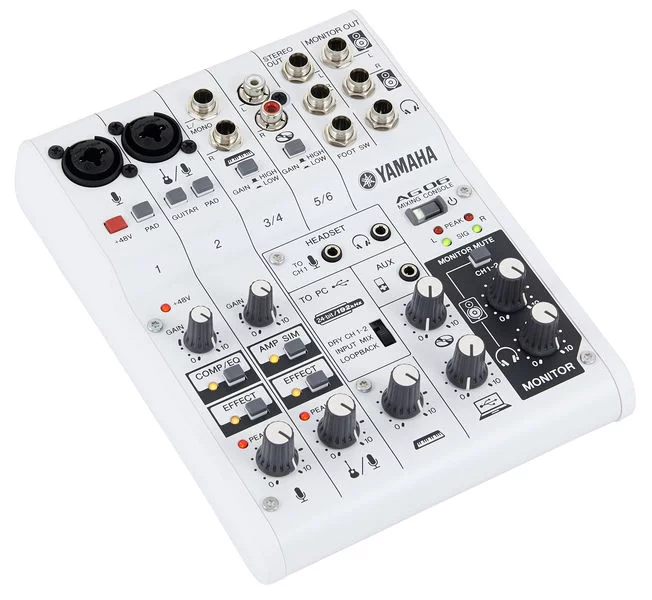 Микшер имеет вход с фантомным питанием и вход для головной гарнитуры для подключения профессионального конденсаторного микрофона или обычных компьютерных наушников с микрофоном.