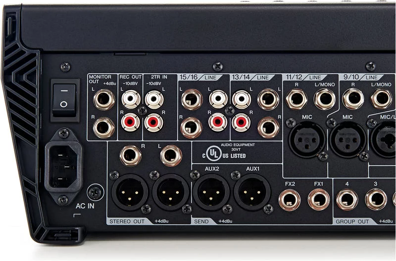 Выходы: 2 мастер, 2 Monitor, 2 REC Out, 2 AUX Out, 2 FX Out, 4 Group