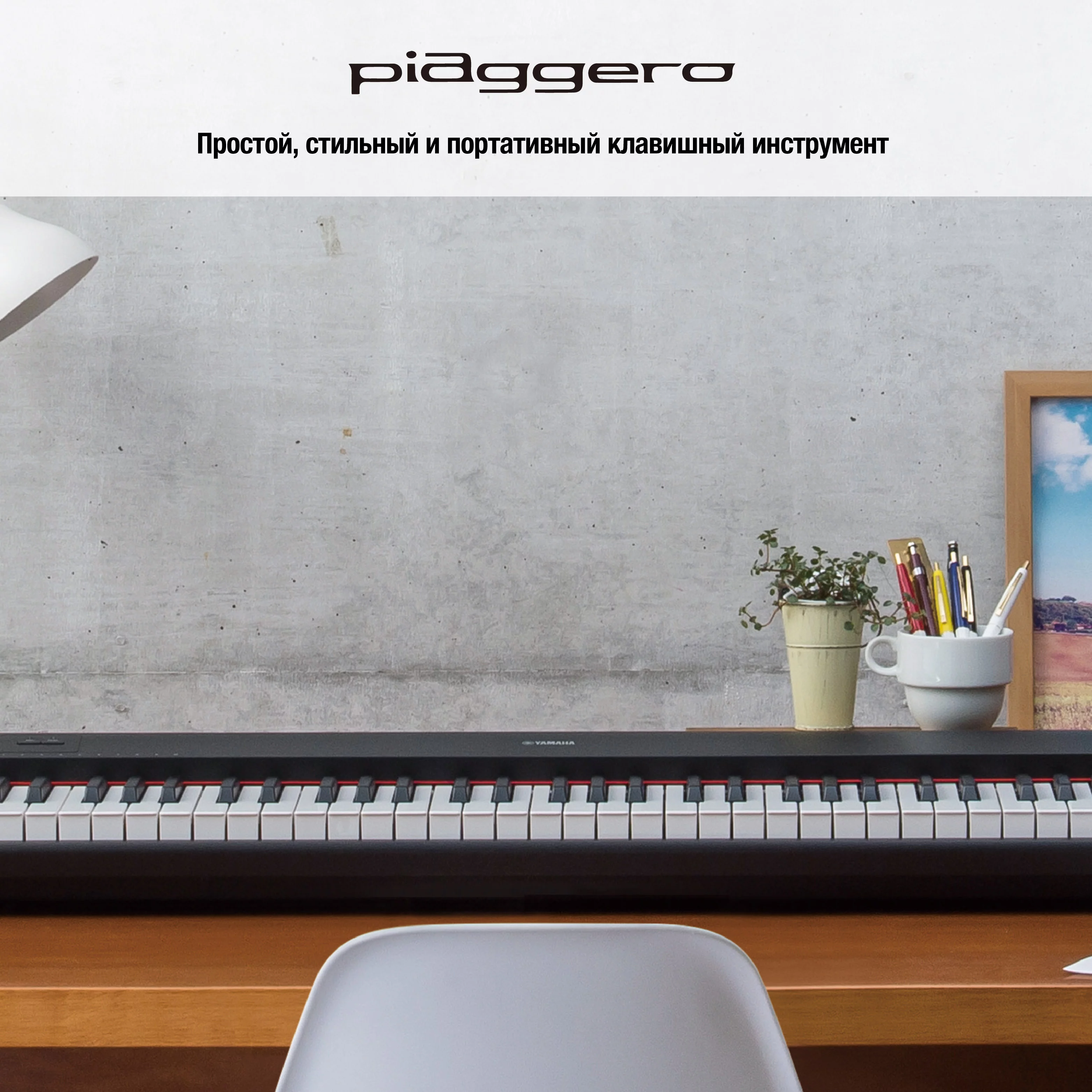 В отличие от предшествующей линейки эта серия PIAGGERO представлена в белом и в черном цвете. Конструктив инструмента позволяет устанавливать его на деревянной или синтезаторной стойке. Через слоты, расположенные на задней части корпуса, можно подключать: