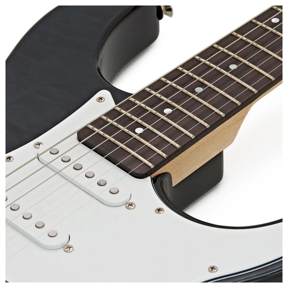 Электрогитара, HSS, Push-Pull, гриф клён, накладка на гриф палисандр, корпус ольха с топом из волнистого клёна, цвет TRANSLUCENT BLACK.