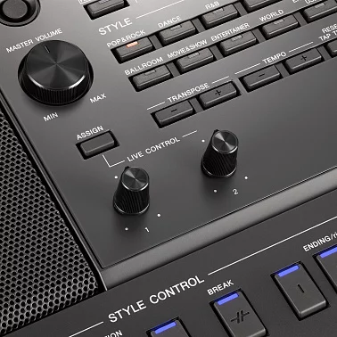 Аппликатура: Single Finger (Для игры одним пальцем), Fingered (Традиционная), Fingered On Bass (Традиционная с басом), Multi Finger (Для игры несколькими пальцами), AI Fingered (Традиционная с использованием искусственного интеллекта), Full Keyboard (Вся клавиатура), режим AI Full Keyboard.