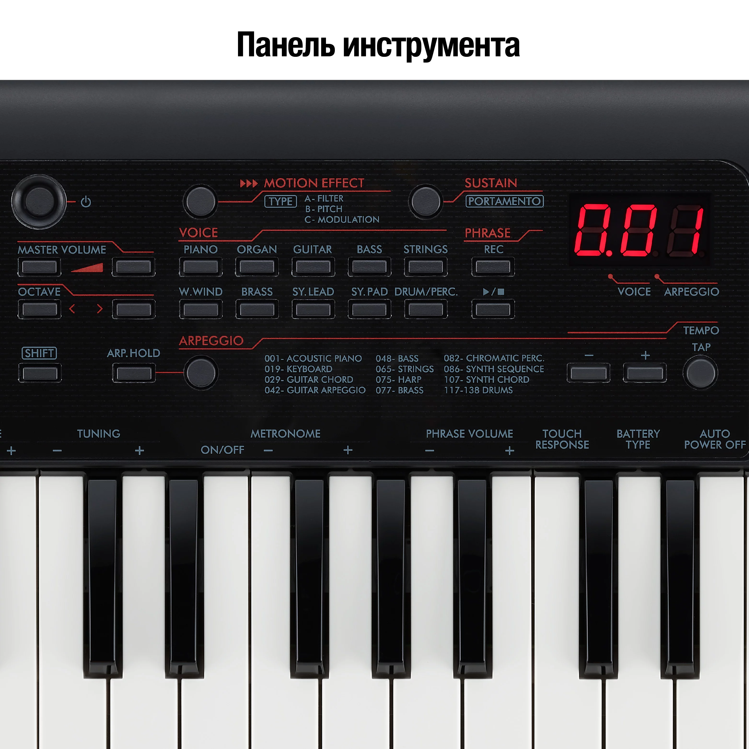 • Кнопка переключения октав: От -04 до +04
