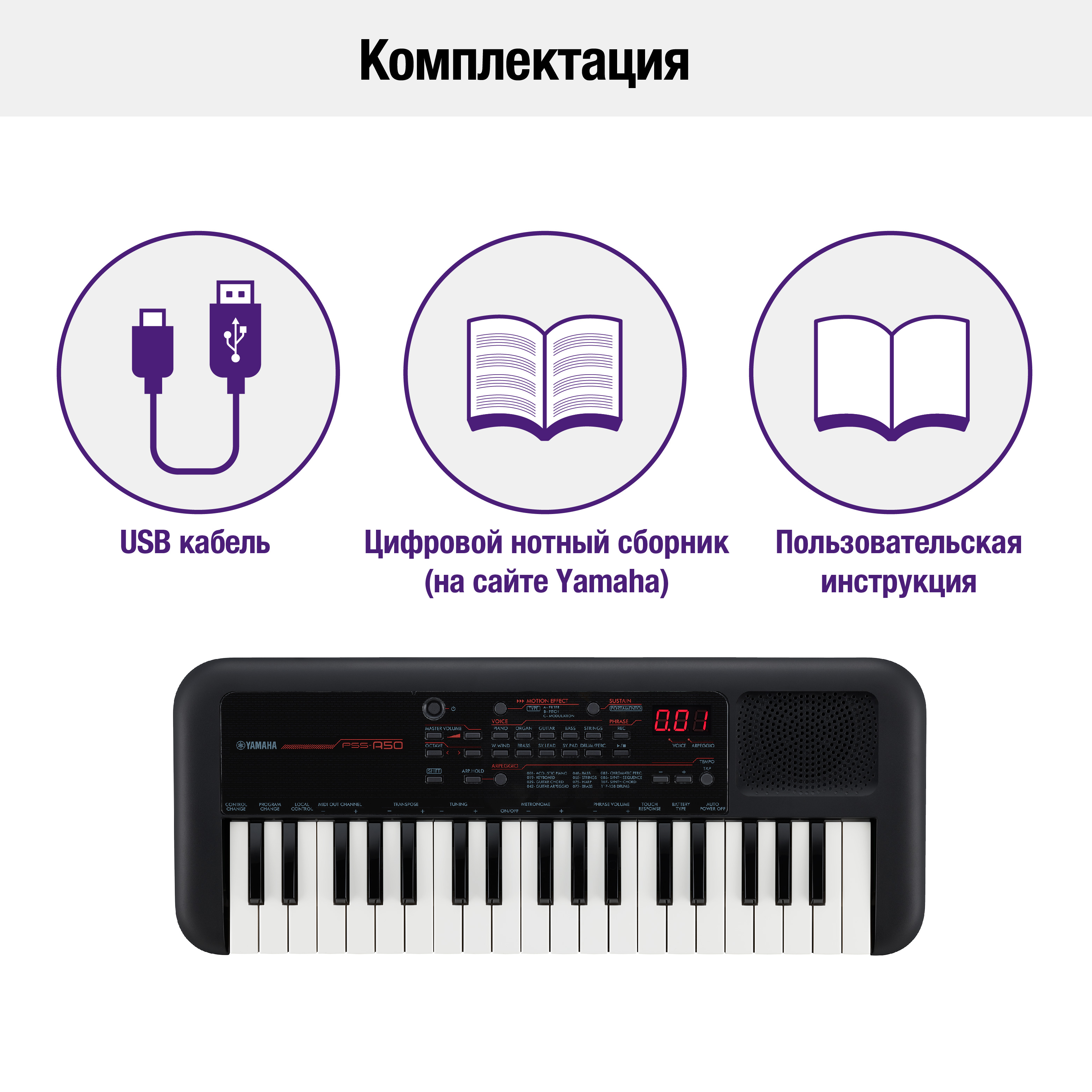 Yamaha PSS-A50 Этот мобильный синтезатор включает все необходимые функции как для выступлений, так и для записи.