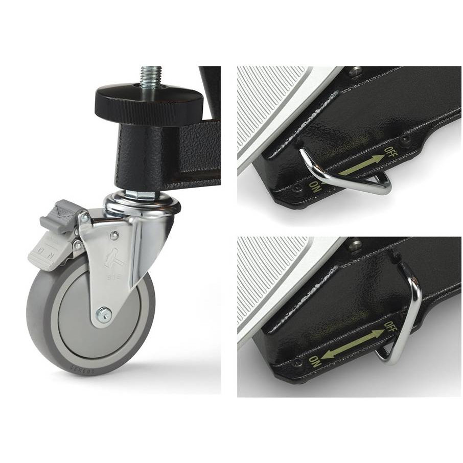 Литавры снабжены двумя видами роликов. С их помощью можно не только с лёгкостью передвигать инструмент, но и настраивать его положение, изменяя высоту и угол наклона. Основные колёса имеют удобный стоп-механизм, позволяющий быстро и надёжно зафиксировать инструмент.