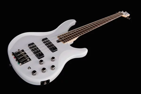 4 струнная бас-гитара, корпус красное дерево, гриф клён/ красное дерево, переключатель актив/ пассив, цвет жемчужно-белый, матовый.