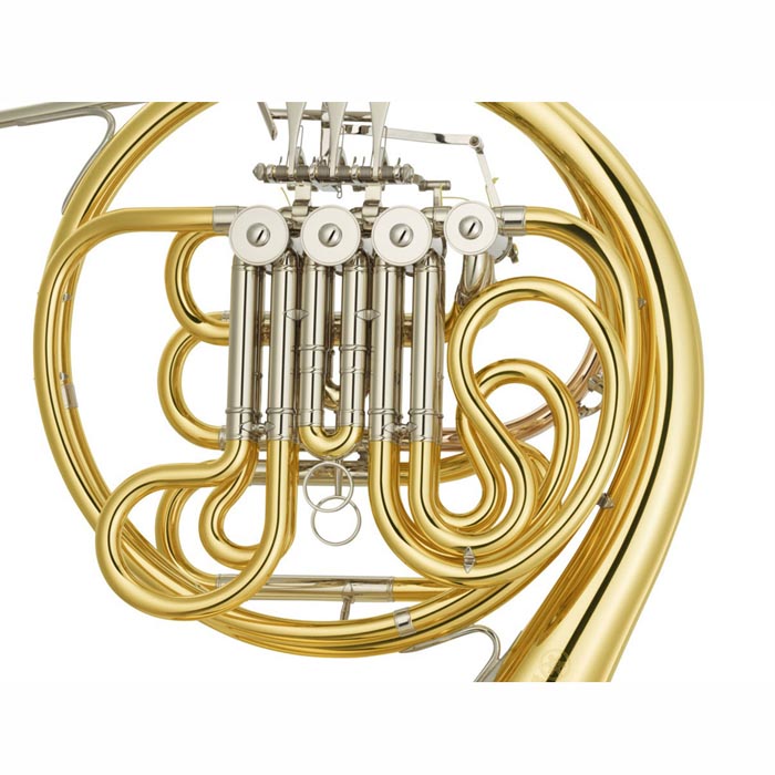 Профессиональная двойная валторна фа/си-бемоль в стиле Geyer из лакированной желтой латуни с несъемным раструбом M •