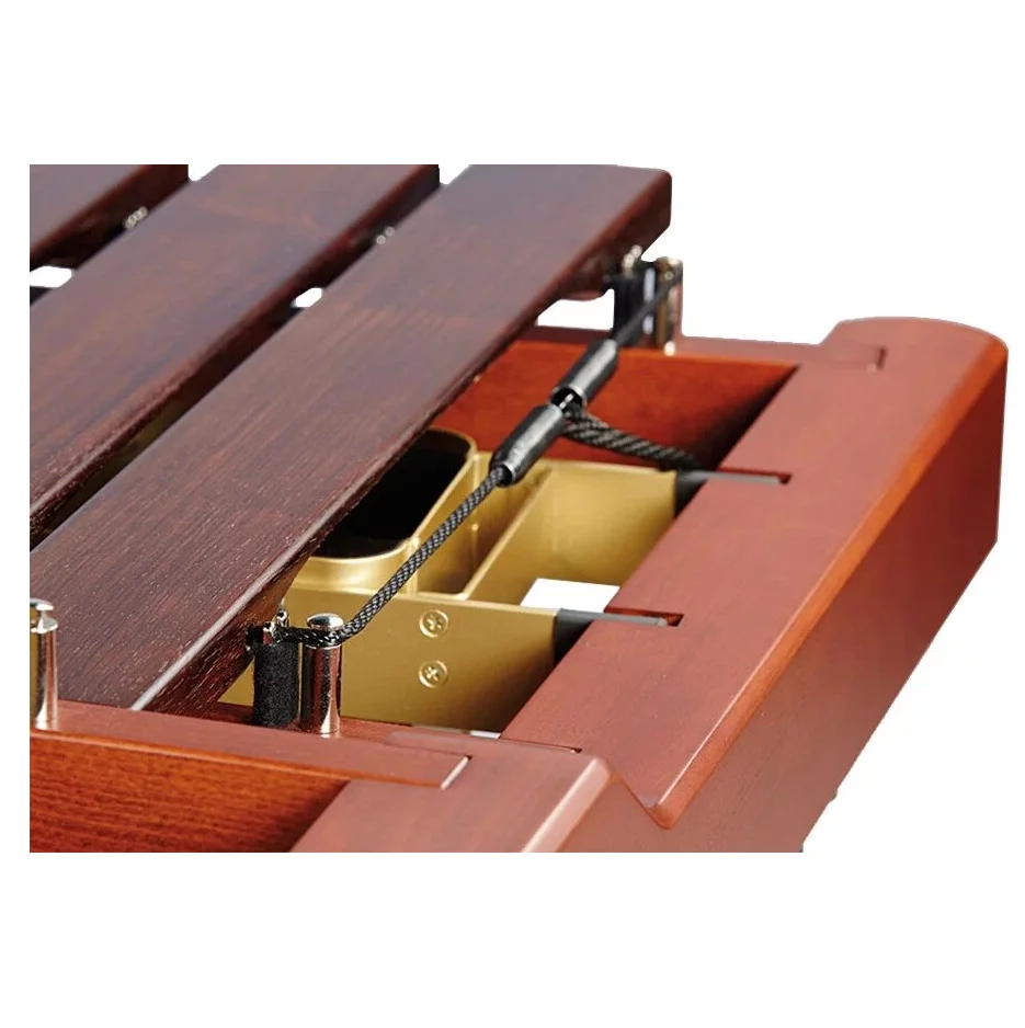 Эксклюзивные методы настройки гарантируют чистоту звука и тона. Тоновые пластины изготовлены из палисандрового дерева. Обтекаемые резонаторы с тонкими стенками, выполненные из прочного сплава, позволяют получить чистое звучание. Пневматический регулятор высоты стойки упрощает задачу регулировки высоты инструмента.