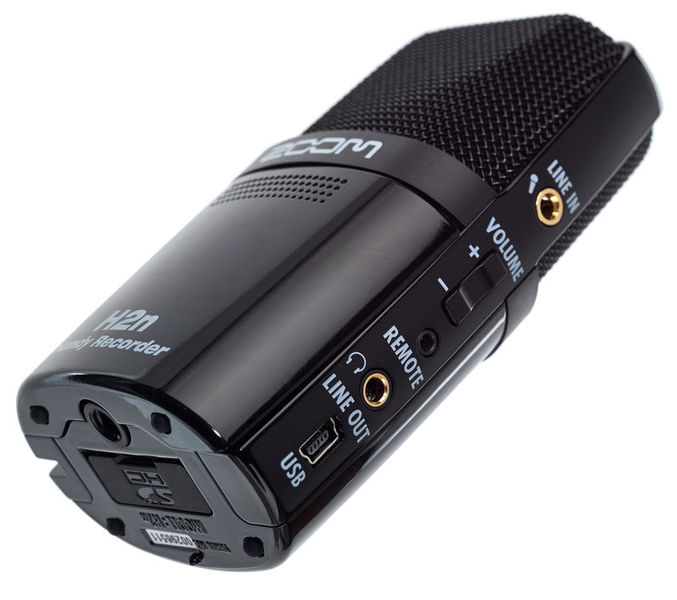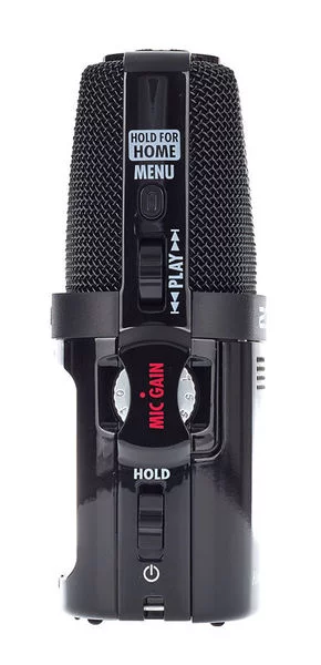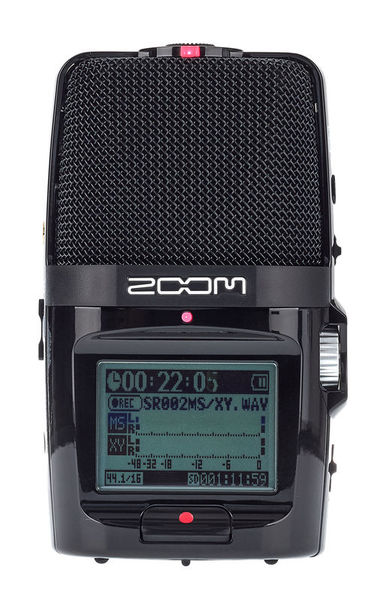 Компактный цифровое записывающее устройство формата Palm Top ZOOM H2 адресовано не только музыкантам, но и профессиональным журналистам: поддержка цифровых меток записи BWF (Broadcast Wave Format - профессионального формата, используемого в оборудовании для монтажа звука на радиостанциях, в телестудиях и т.д.), делает этот компактный (весом всего 110 г без элементов питания) делает данный прибор незаменимым помощником современного репортера. Для хранения записанного материала используются карты памяти популярного формата Secure Digital (SD). В комплект поставки входит карта емкостью 512 мБ, а использование 4-гигабитной карточки позволяет сохранить 360 минут стереозаписи с качеством аудио компакт-диска (24-бит/44.1 кГц, при максимально возможном качестве записи 16-бит/96 кГц) или 70 часов стереосигнала в формате MP3 (128 кбит/с). При этом "полезное" время записи может быть использовано максимально эффективно при помощи функции автоматического начала и прекращения записи при наличии или отсутствии полезного аудиосигнала определенного уровня. Также Вся записанная информация затем может быть легко перенесена на ПК под управлением ОС Windows или Mac посредством установленного порта USB, который также может служить для подключения H2 к персональному компьютеру в качестве 3D-микрофона для записи в формате 5.1 Портативный рекордер H2 также оснащен встроенным хроматическим тюнером для настройки музыкальных инструментов, метрономом, функцией нормализации уровня записи, обрезным фильтром низких частот (Low-Cut Filter), компрессором/лимитером. Возможна также внутренняя конвертация файлов формата WAV в MP3-файлы. Кстати, H2 может использоваться и как обычный MP3-плейер. При автономной работе с питанием от 2 батарей размера AA, H4 обеспечивает 4 часа непрерывной записи, а в случае работы с ПК питание прибора осуществляется по шине USB.